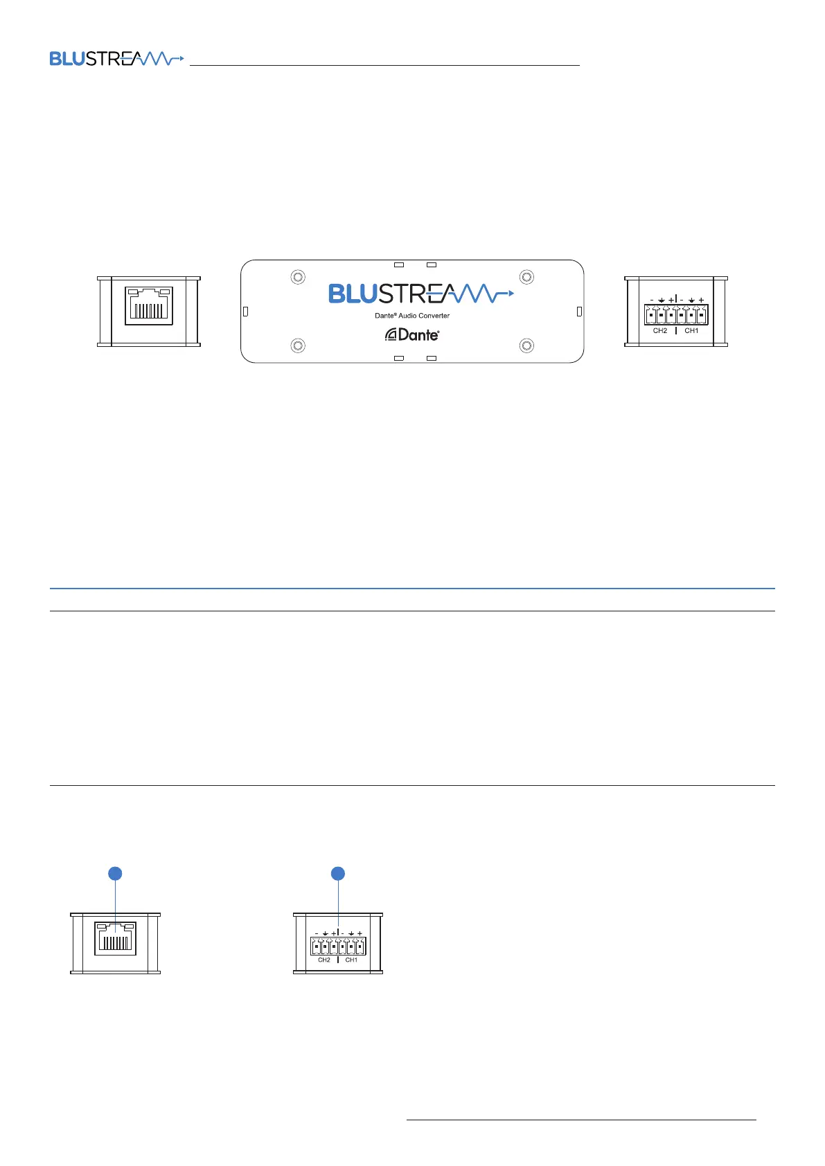 1Dante® Audio Output - RJ45 socket connets to your Dante® network.