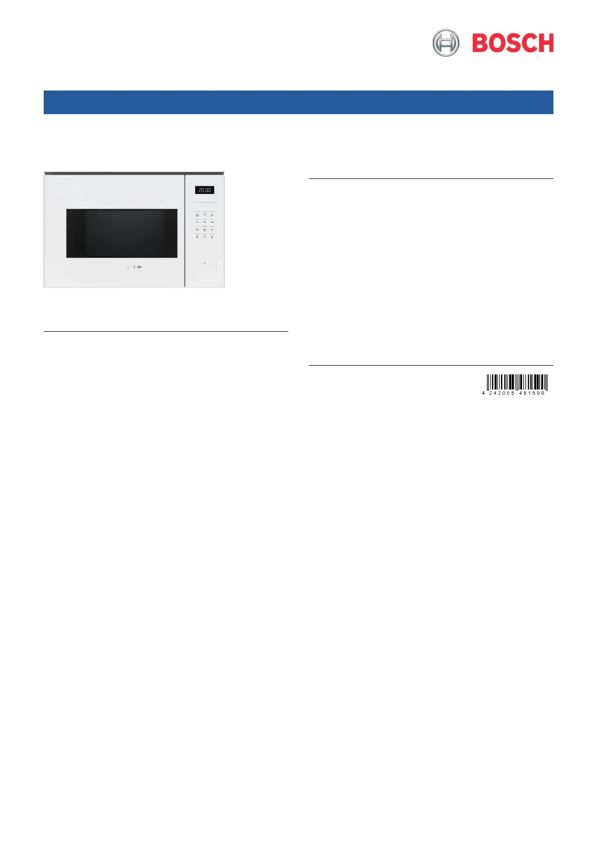 Lies die bedienungsanleitung für Bosch BEL554MW2 (3 Seiten) kostenlos online; sie gehört zur Kategorie Mikrowelle. Dieses Handbuch wurde von 2 Personen als hilfreich bewertet und erhielt im Schnitt 4.7 Sterne aus 8 Bewertungen. Hast du eine Frage zu Bosch BEL554MW2 oder möchtest du andere Nutzer dieses Produkts befragen? Stelle eine Frage