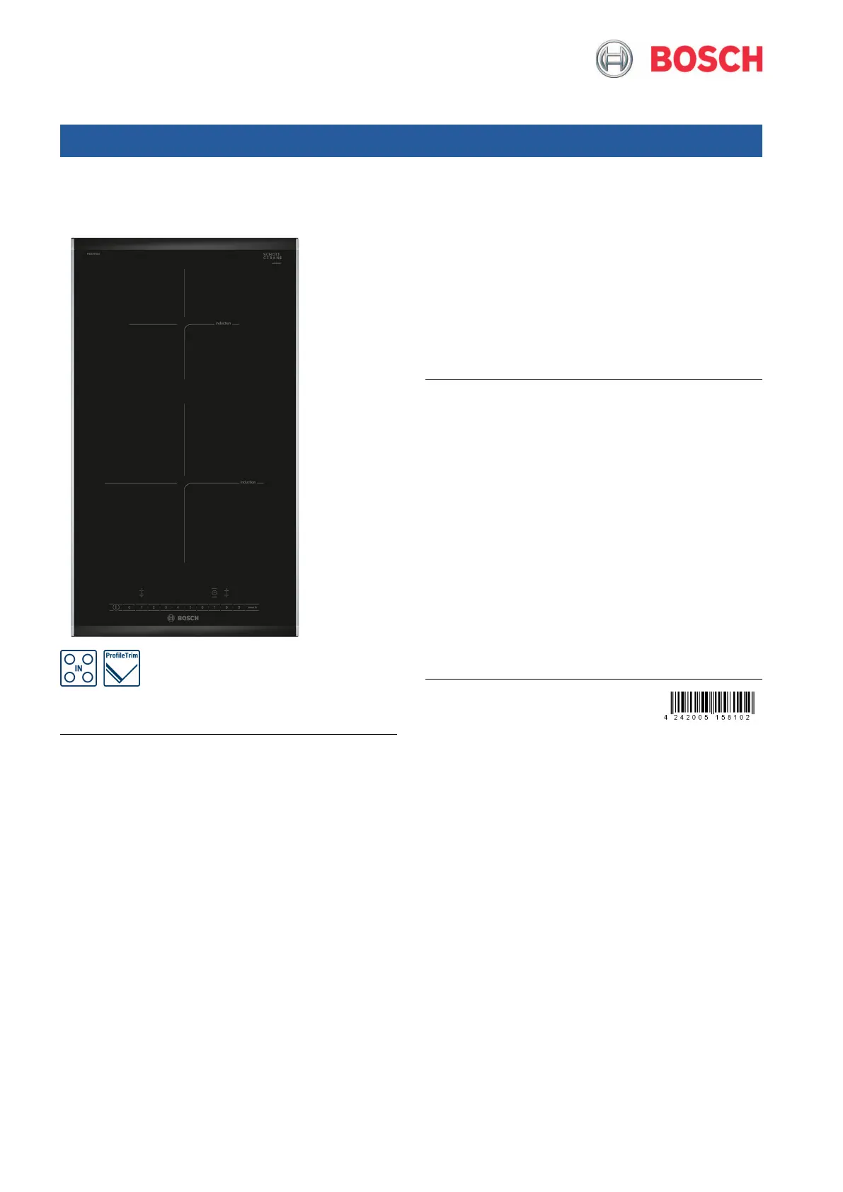 Lies die bedienungsanleitung für Bosch PIB375FB5I (5 Seiten) kostenlos online; sie gehört zur Kategorie Herd. Dieses Handbuch wurde von 3 Personen als hilfreich bewertet und erhielt im Schnitt 3.9 Sterne aus 2 Bewertungen. Hast du eine Frage zu Bosch PIB375FB5I oder möchtest du andere Nutzer dieses Produkts befragen? Stelle eine Frage