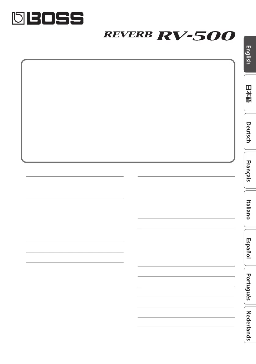 Lies die bedienungsanleitung für Boss Reverb RV-500 (28 Seiten) kostenlos online; sie gehört zur Kategorie Nicht kategorisiert. Dieses Handbuch wurde von 29 Personen als hilfreich bewertet und erhielt im Schnitt 4.6 Sterne aus 15 Bewertungen. Hast du eine Frage zu Boss Reverb RV-500 oder möchtest du andere Nutzer dieses Produkts befragen? Stelle eine Frage