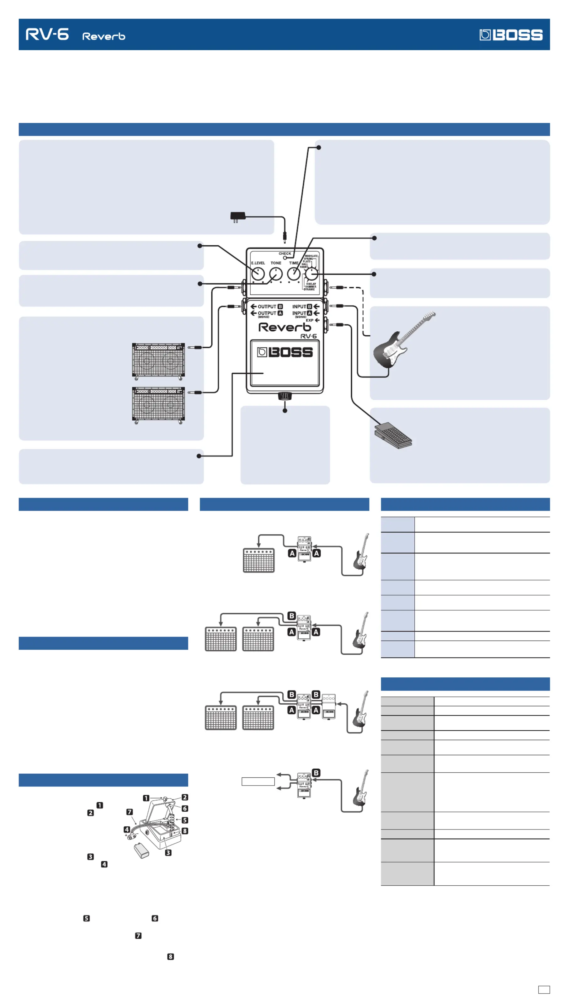 Lies die bedienungsanleitung für Boss Reverb RV-6 (1 Seiten) kostenlos online; sie gehört zur Kategorie Nicht kategorisiert. Dieses Handbuch wurde von 41 Personen als hilfreich bewertet und erhielt im Schnitt 5.0 Sterne aus 21 Bewertungen. Hast du eine Frage zu Boss Reverb RV-6 oder möchtest du andere Nutzer dieses Produkts befragen? Stelle eine Frage
