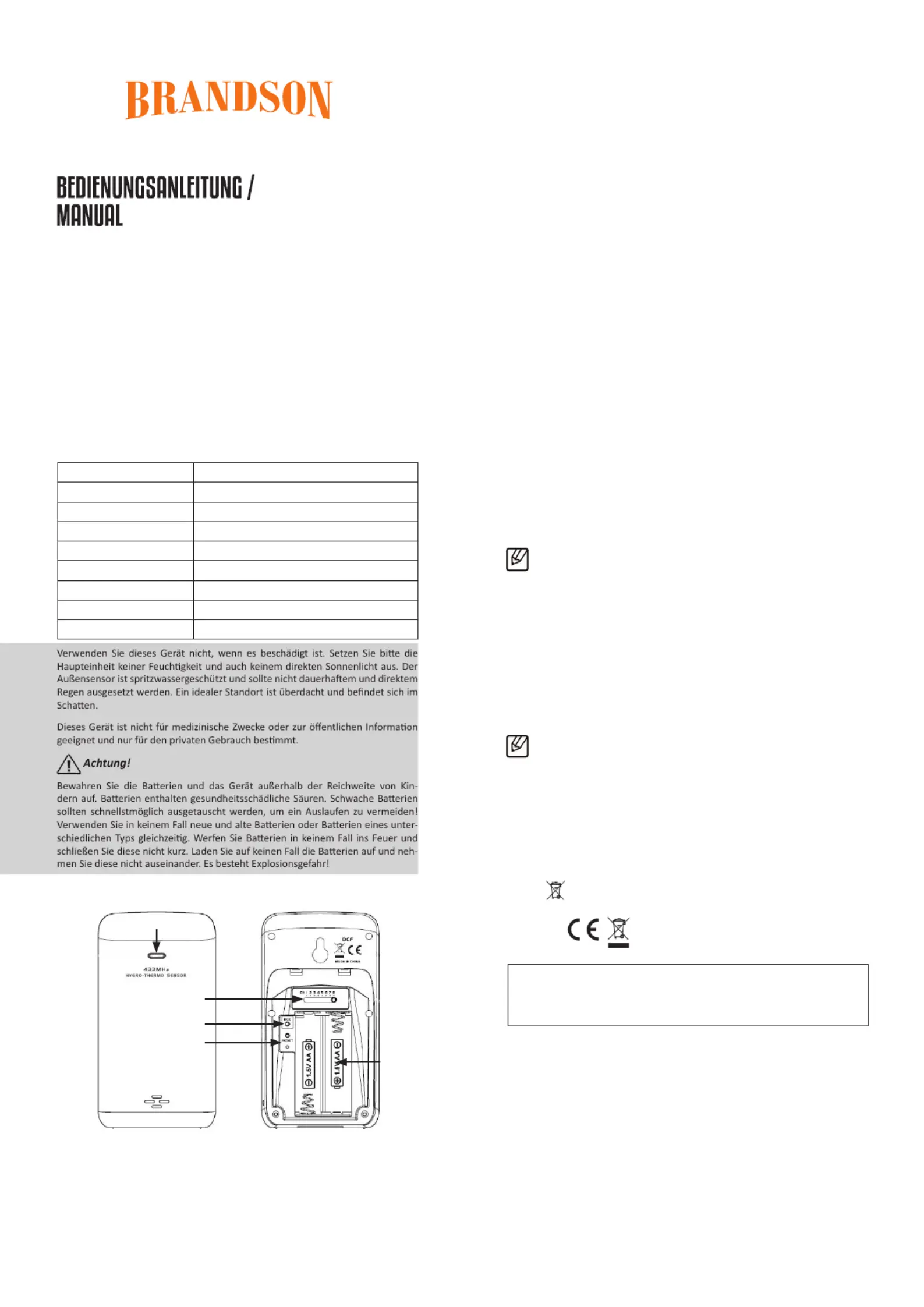 Bedienungsanleitung Wetterstation Brandson