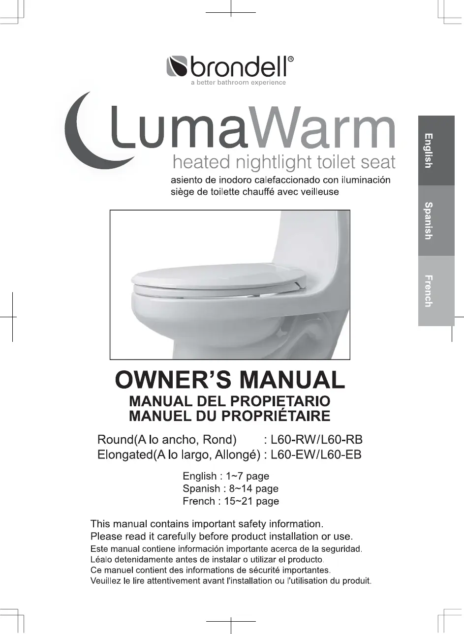 Lies die bedienungsanleitung für Brondell LumaWarm L60 (3 Seiten) kostenlos online; sie gehört zur Kategorie Nicht kategorisiert. Dieses Handbuch wurde von 3 Personen als hilfreich bewertet und erhielt im Schnitt 4.6 Sterne aus 2 Bewertungen. Hast du eine Frage zu Brondell LumaWarm L60 oder möchtest du andere Nutzer dieses Produkts befragen? Stelle eine Frage