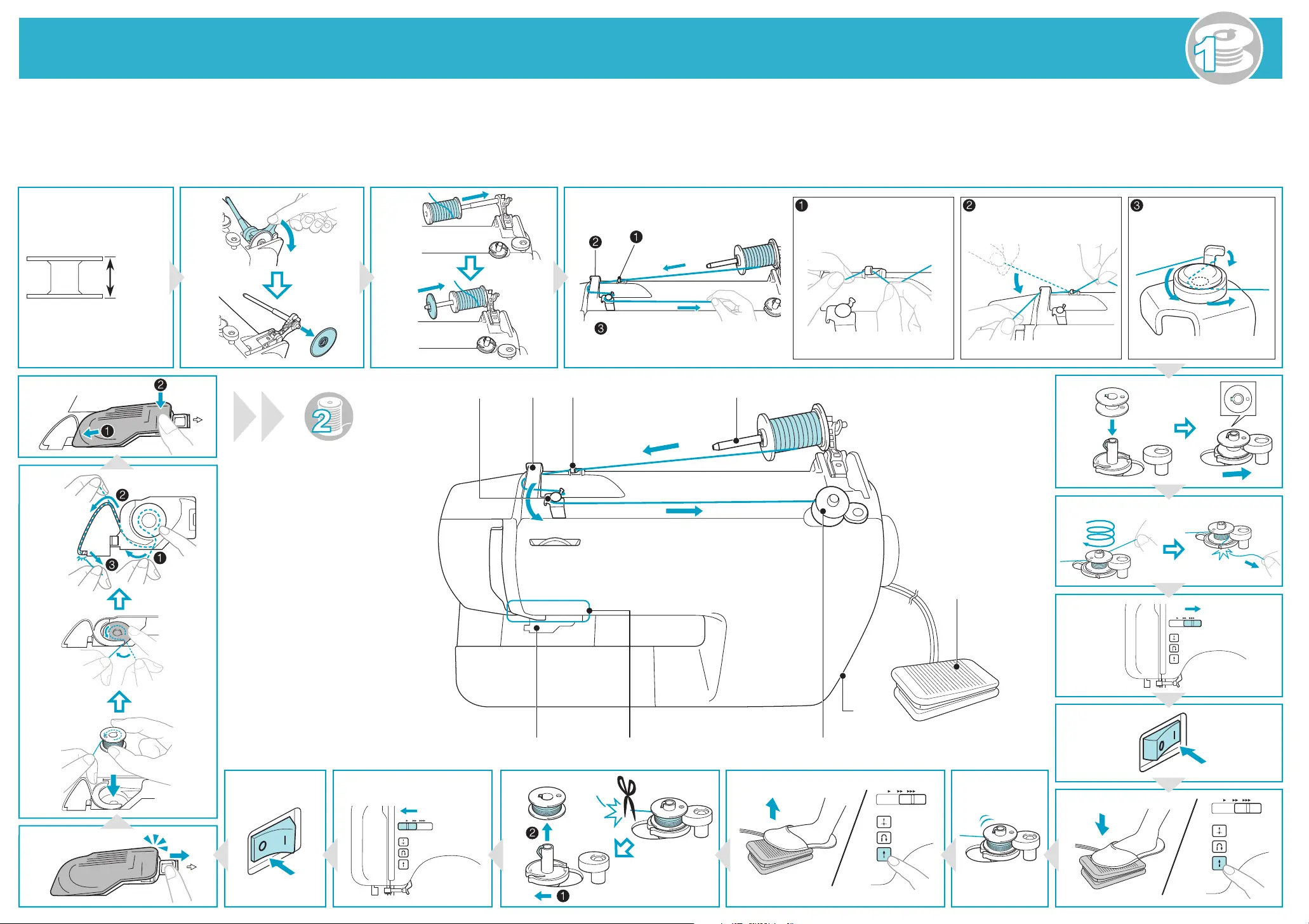 Beknopte bedieningsgids 1 - De onderdraad voorbereiden - / Guida di riferimento rapido 1 - Preparazione della spolina - /