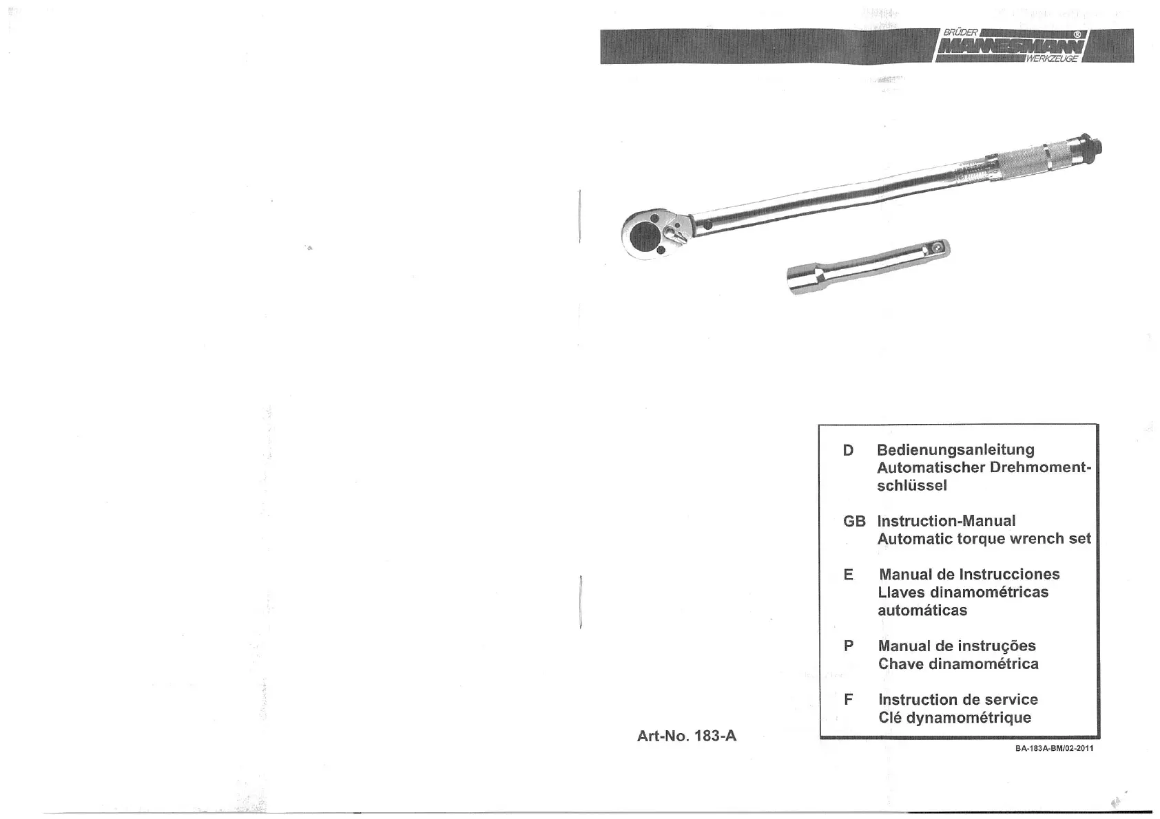 Brüder Mannesmann 183A Bedienungsanleitung