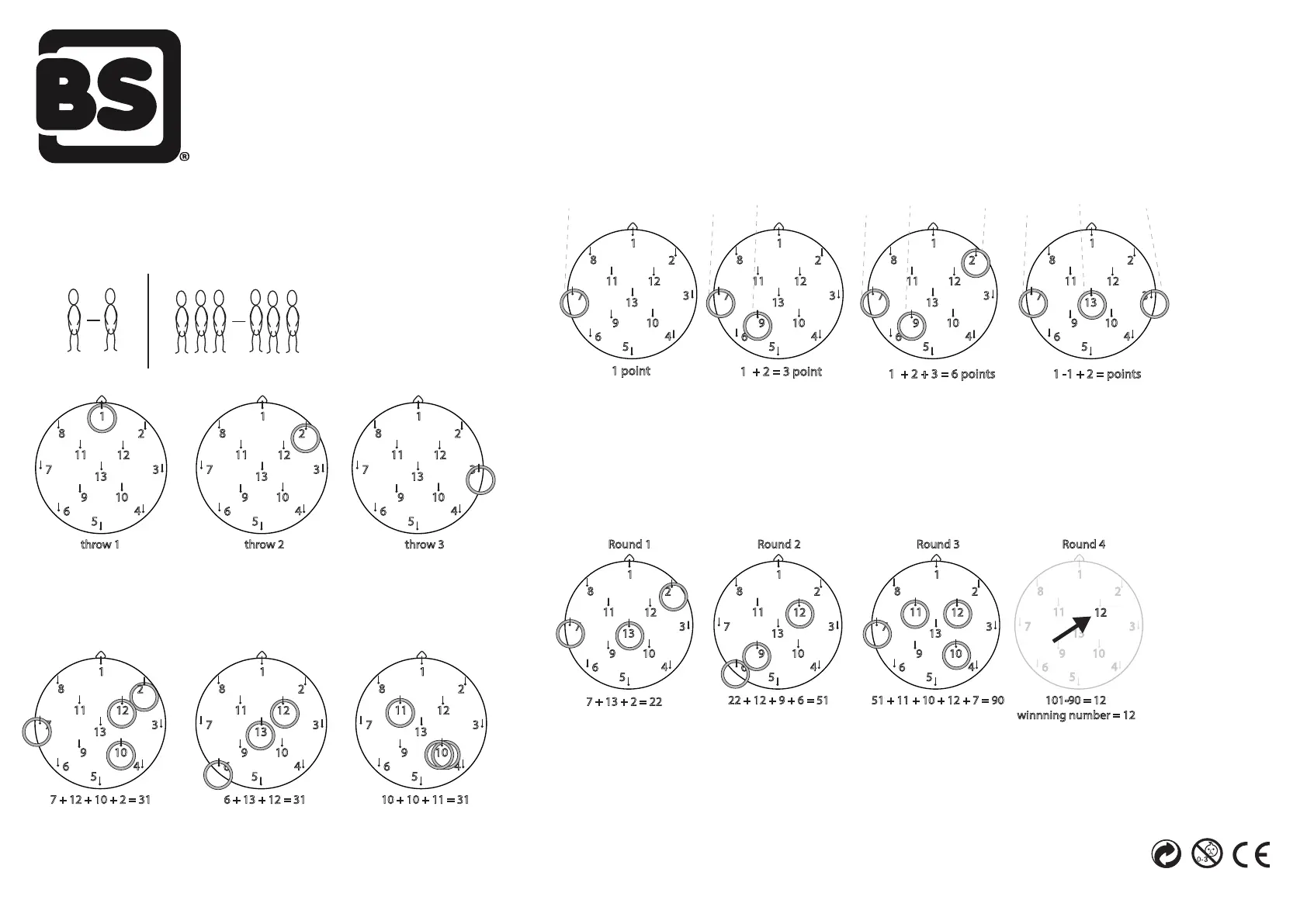 hoeft te gooien, telt dat aantal punten als win-getal. Om te winnen moet je nu een ring om jouw win-getal gooien. Gooi je per