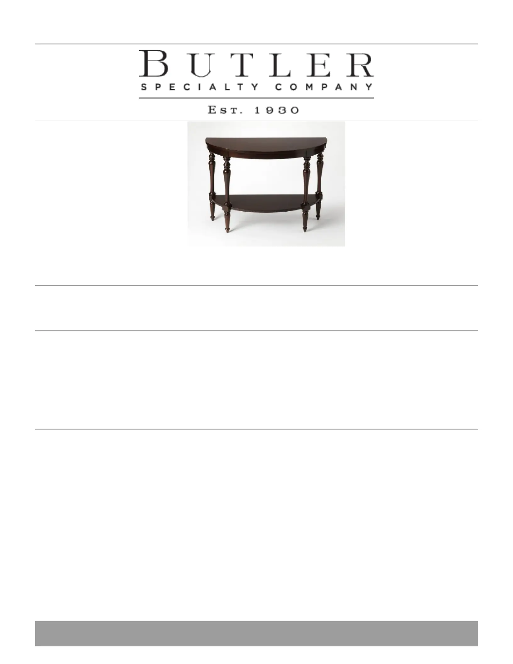 Lies die bedienungsanleitung für Butler Amherst 9345379 (2 Seiten) kostenlos online; sie gehört zur Kategorie Tisch . Dieses Handbuch wurde von 29 Personen als hilfreich bewertet und erhielt im Schnitt 4.3 Sterne aus 15 Bewertungen. Hast du eine Frage zu Butler Amherst 9345379 oder möchtest du andere Nutzer dieses Produkts befragen? Stelle eine Frage