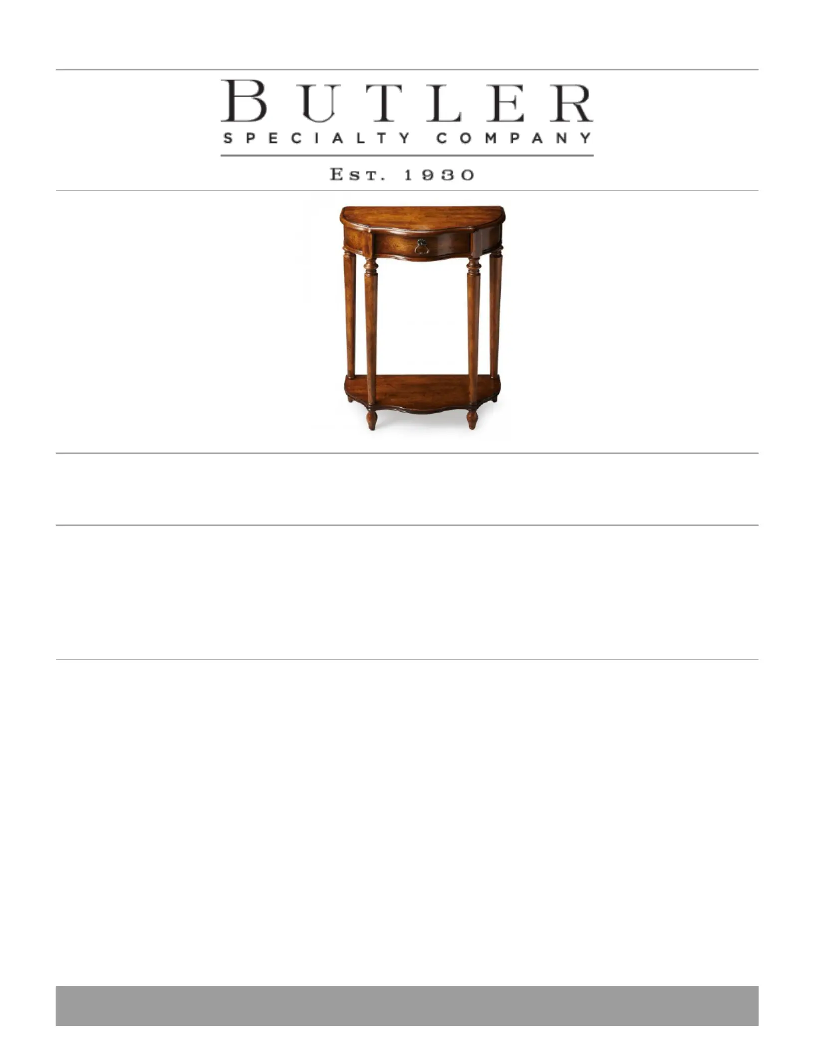Lies die bedienungsanleitung für Butler Ashby 2101236 (1 Seiten) kostenlos online; sie gehört zur Kategorie Tisch . Dieses Handbuch wurde von 41 Personen als hilfreich bewertet und erhielt im Schnitt 5.0 Sterne aus 21 Bewertungen. Hast du eine Frage zu Butler Ashby 2101236 oder möchtest du andere Nutzer dieses Produkts befragen? Stelle eine Frage