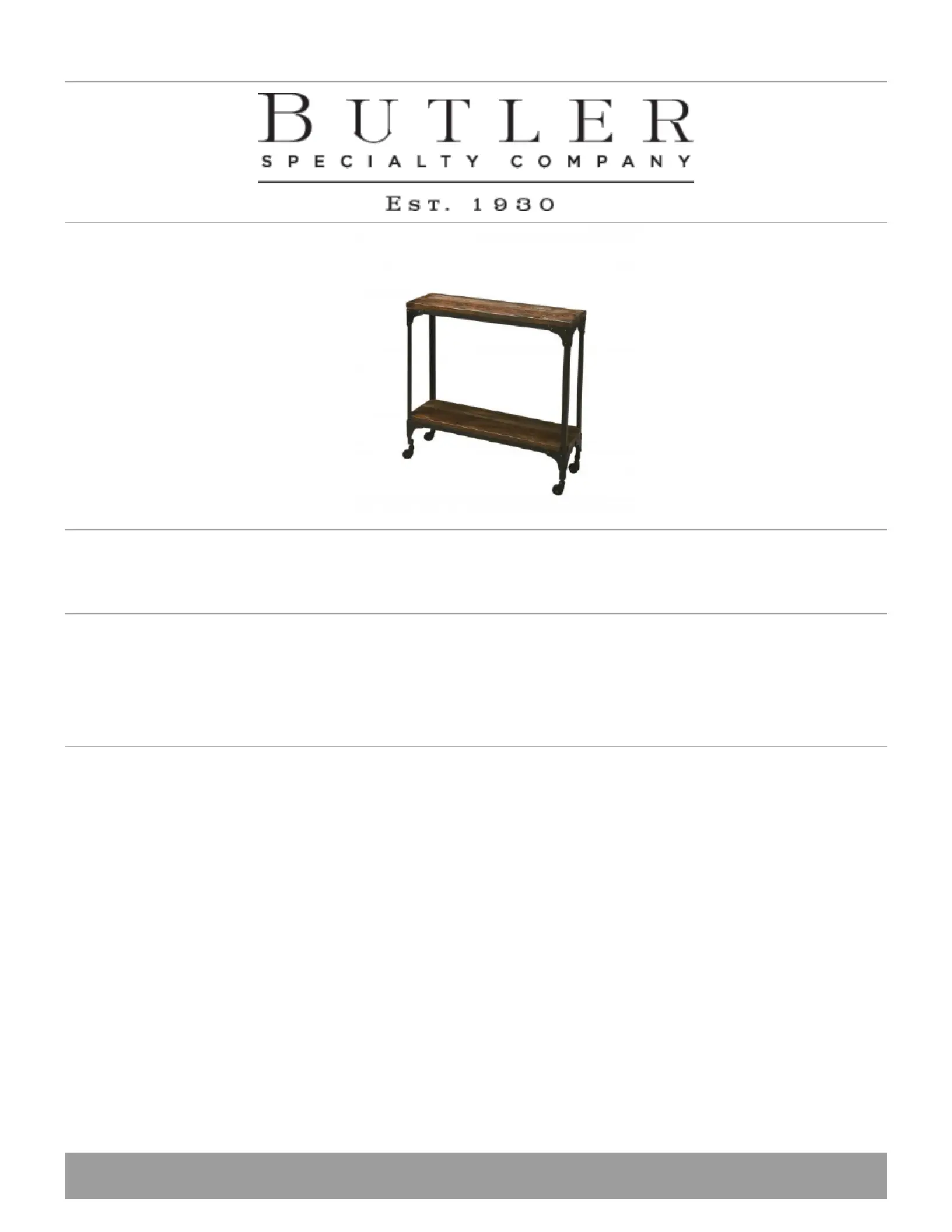Lies die bedienungsanleitung für Butler Gandolph (1 Seiten) kostenlos online; sie gehört zur Kategorie Tisch . Dieses Handbuch wurde von 34 Personen als hilfreich bewertet und erhielt im Schnitt 4.2 Sterne aus 2 Bewertungen. Hast du eine Frage zu Butler Gandolph oder möchtest du andere Nutzer dieses Produkts befragen? Stelle eine Frage