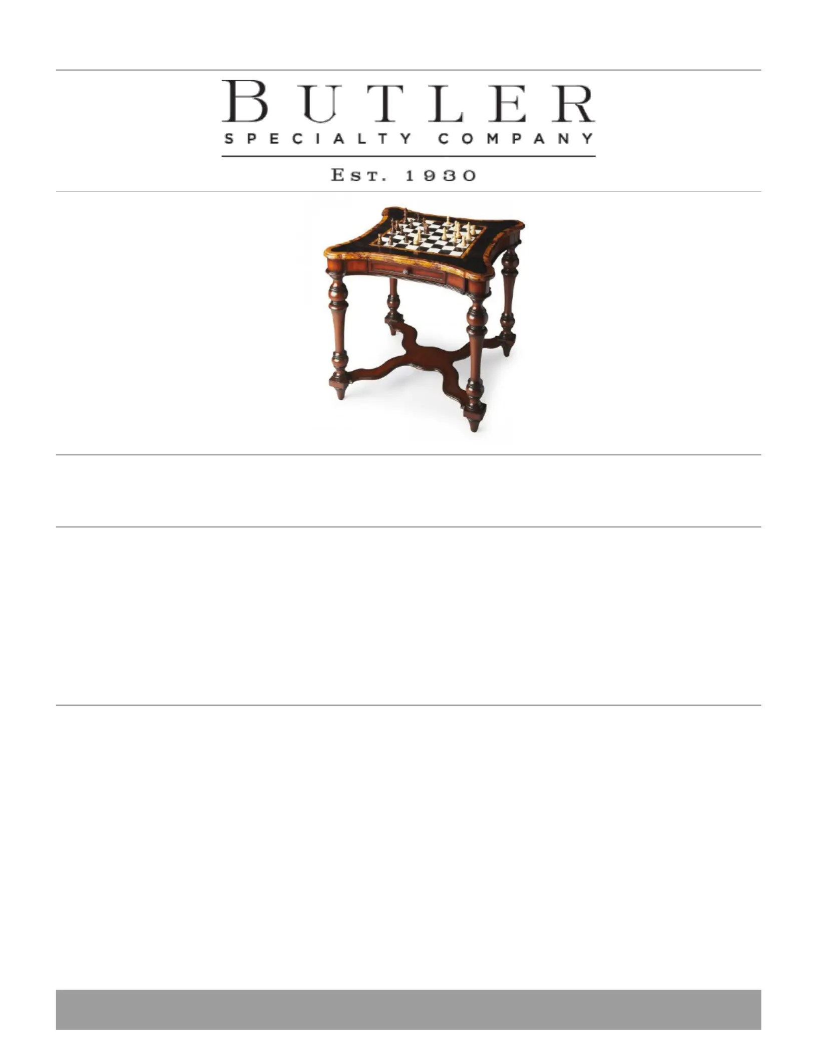 Lies die bedienungsanleitung für Butler Heritage (2 Seiten) kostenlos online; sie gehört zur Kategorie Tisch . Dieses Handbuch wurde von 36 Personen als hilfreich bewertet und erhielt im Schnitt 4.9 Sterne aus 18.5 Bewertungen. Hast du eine Frage zu Butler Heritage oder möchtest du andere Nutzer dieses Produkts befragen? Stelle eine Frage