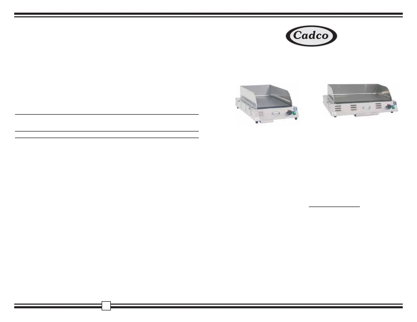 Cadco warrants that this Griddle be free from defects in material and