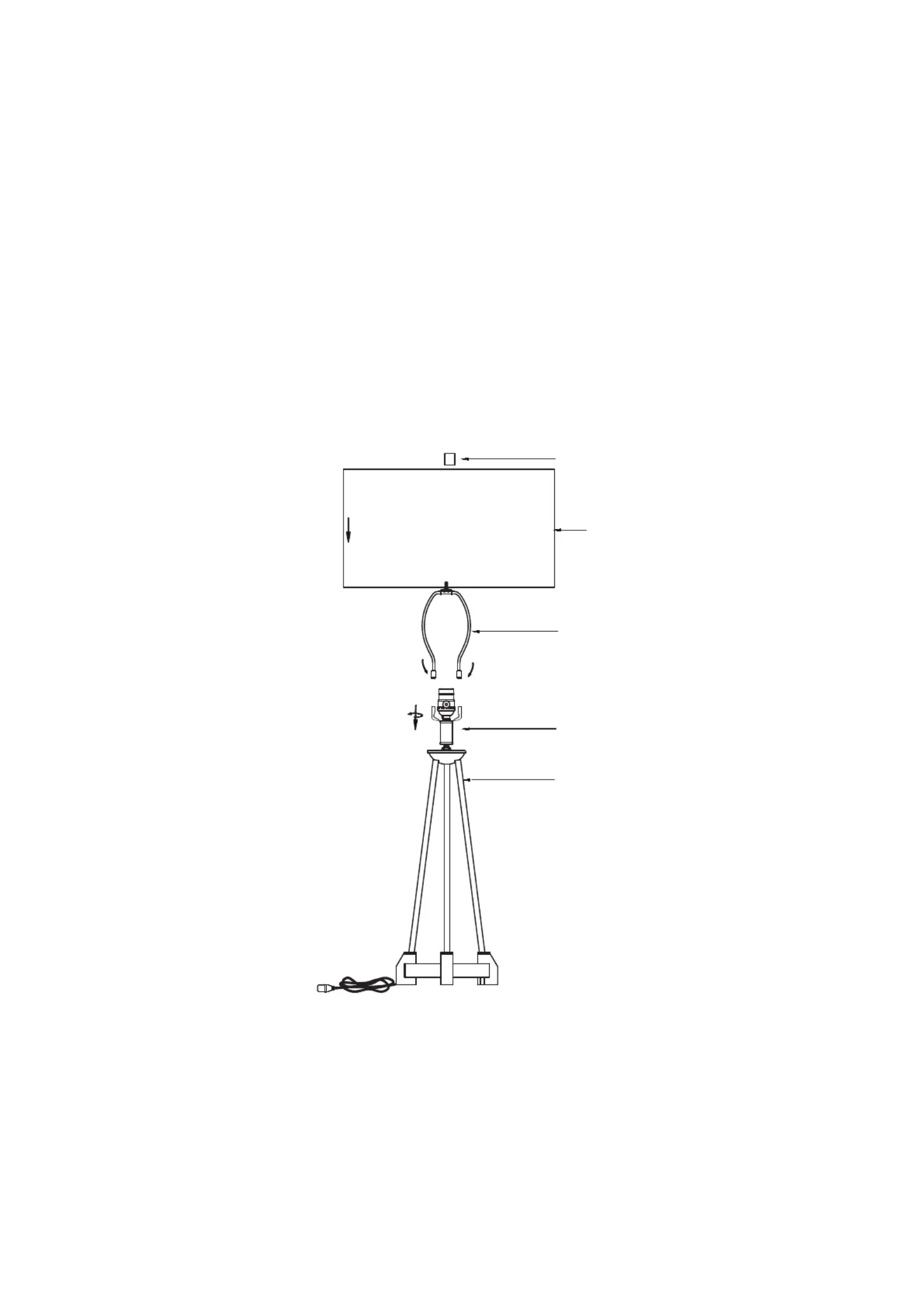 3.PLACE SHADE (B) ONTO HARP (C) SCREW FINIAL (A) CLOCKWISE TO TIGHTEN.