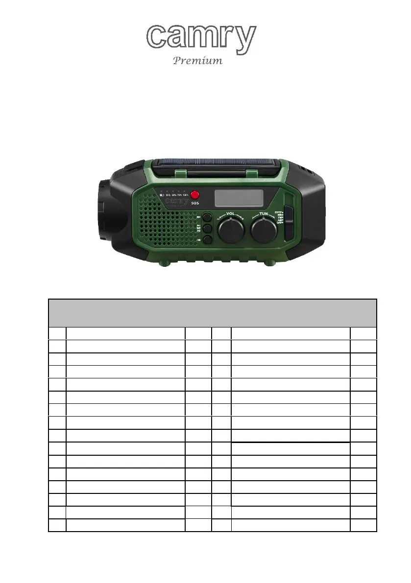 Lies die bedienungsanleitung für Camry CR 1919 (144 Seiten) kostenlos online; sie gehört zur Kategorie Radio. Dieses Handbuch wurde von 12 Personen als hilfreich bewertet und erhielt im Schnitt 4.7 Sterne aus 6.5 Bewertungen. Hast du eine Frage zu Camry CR 1919 oder möchtest du andere Nutzer dieses Produkts befragen? Stelle eine Frage