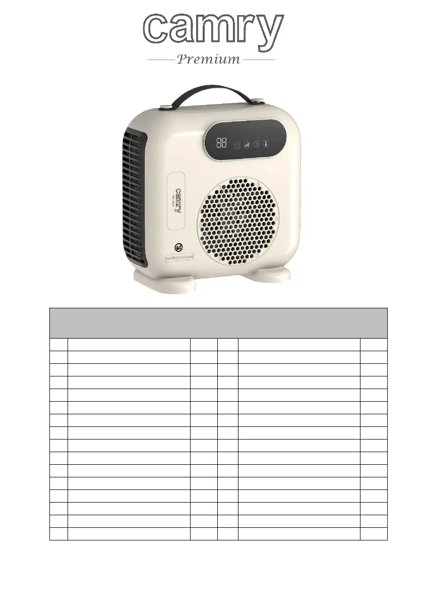 Lies die bedienungsanleitung für Camry CR 7759 (176 Seiten) kostenlos online; sie gehört zur Kategorie Heizung. Dieses Handbuch wurde von 2 Personen als hilfreich bewertet und erhielt im Schnitt 4.9 Sterne aus 4 Bewertungen. Hast du eine Frage zu Camry CR 7759 oder möchtest du andere Nutzer dieses Produkts befragen? Stelle eine Frage