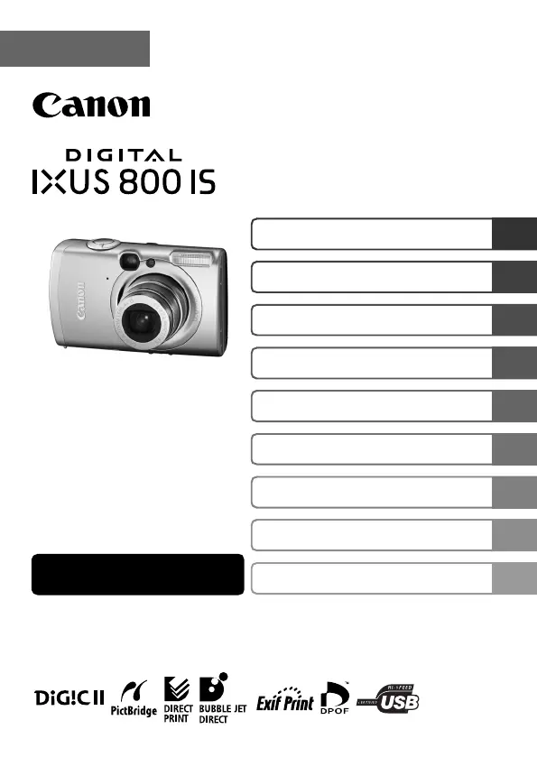 Lies die bedienungsanleitung für Canon Digital IXUS 800 IS (136 Seiten) kostenlos online; sie gehört zur Kategorie Digitalkamera. Dieses Handbuch wurde von 16 Personen als hilfreich bewertet und erhielt im Schnitt 4.6 Sterne aus 5 Bewertungen. Hast du eine Frage zu Canon Digital IXUS 800 IS oder möchtest du andere Nutzer dieses Produkts befragen? Stelle eine Frage