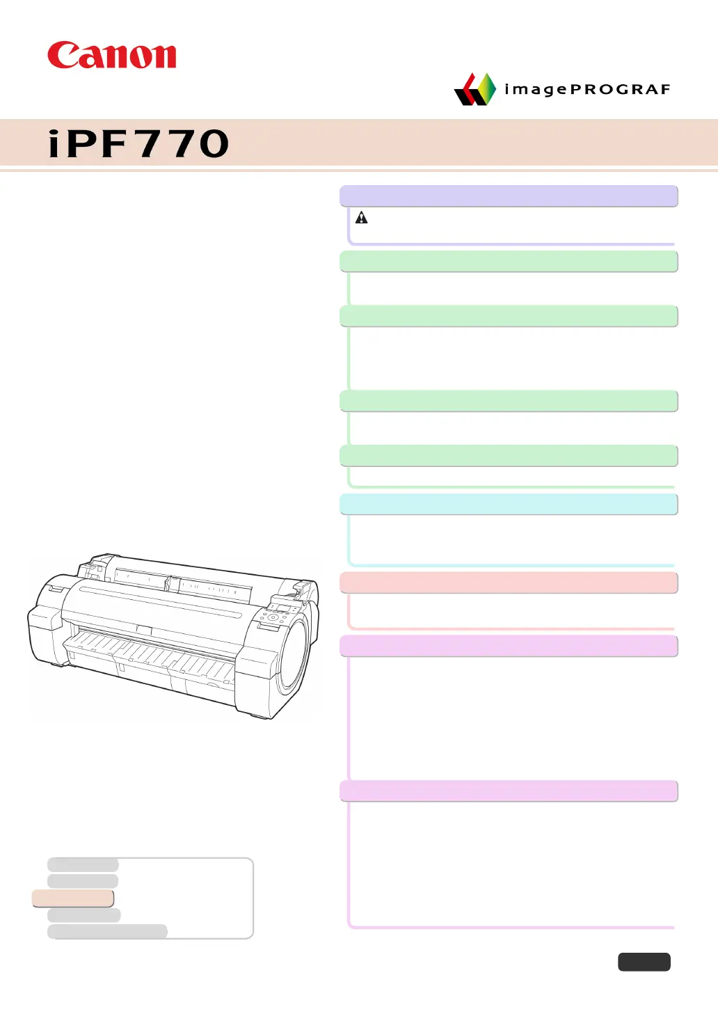 Lies die bedienungsanleitung für Canon imagePROGRAF iPF770 MFP M40 (132 Seiten) kostenlos online; sie gehört zur Kategorie Drucker. Dieses Handbuch wurde von 18 Personen als hilfreich bewertet und erhielt im Schnitt 4.8 Sterne aus 9.5 Bewertungen. Hast du eine Frage zu Canon imagePROGRAF iPF770 MFP M40 oder möchtest du andere Nutzer dieses Produkts befragen? Stelle eine Frage