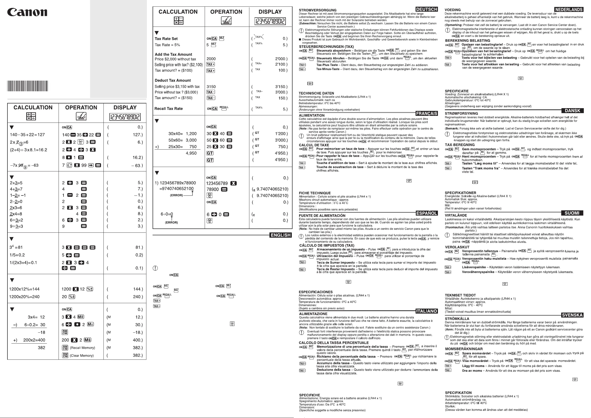 Bedienungsanleitung Taschenrechner Canon