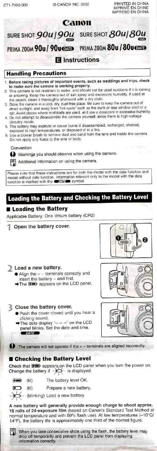 Lies die bedienungsanleitung für Canon Sure Shot 90u (9 Seiten) kostenlos online; sie gehört zur Kategorie Nicht kategorisiert. Dieses Handbuch wurde von 32 Personen als hilfreich bewertet und erhielt im Schnitt 4.9 Sterne aus 16.5 Bewertungen. Hast du eine Frage zu Canon Sure Shot 90u oder möchtest du andere Nutzer dieses Produkts befragen? Stelle eine Frage