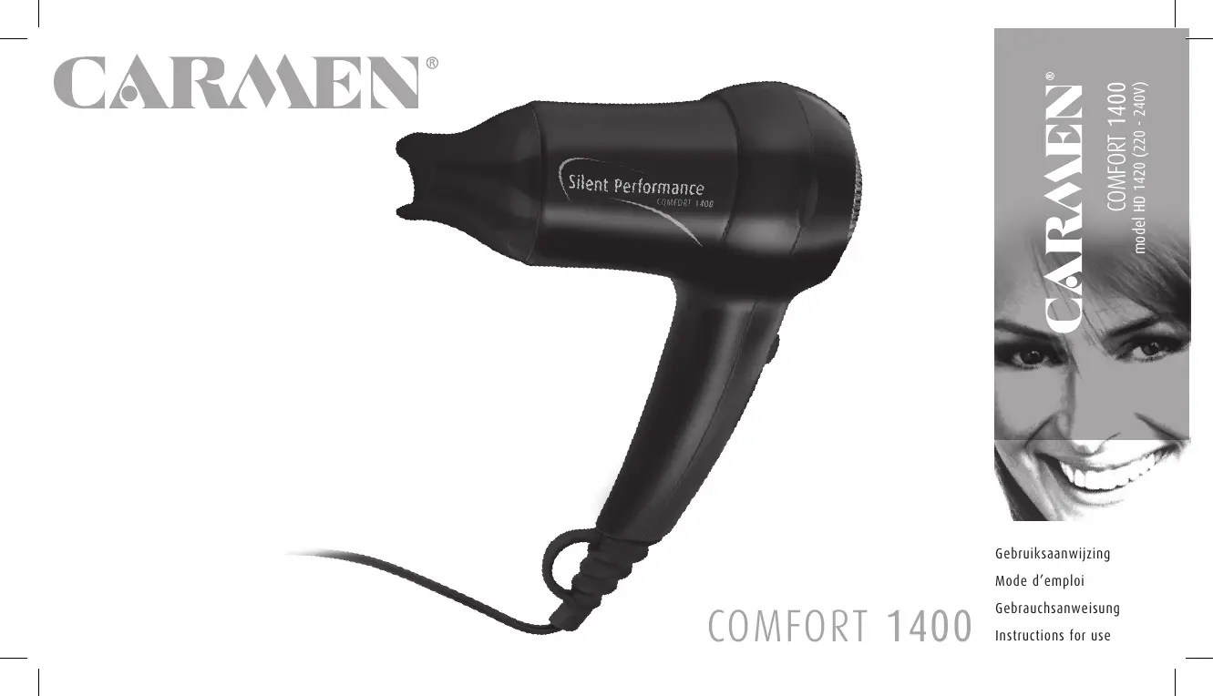 Lies die bedienungsanleitung für Carmen HD1420 (20 Seiten) kostenlos online; sie gehört zur Kategorie Fön. Dieses Handbuch wurde von 19 Personen als hilfreich bewertet und erhielt im Schnitt 4.8 Sterne aus 10 Bewertungen. Hast du eine Frage zu Carmen HD1420 oder möchtest du andere Nutzer dieses Produkts befragen? Stelle eine Frage
