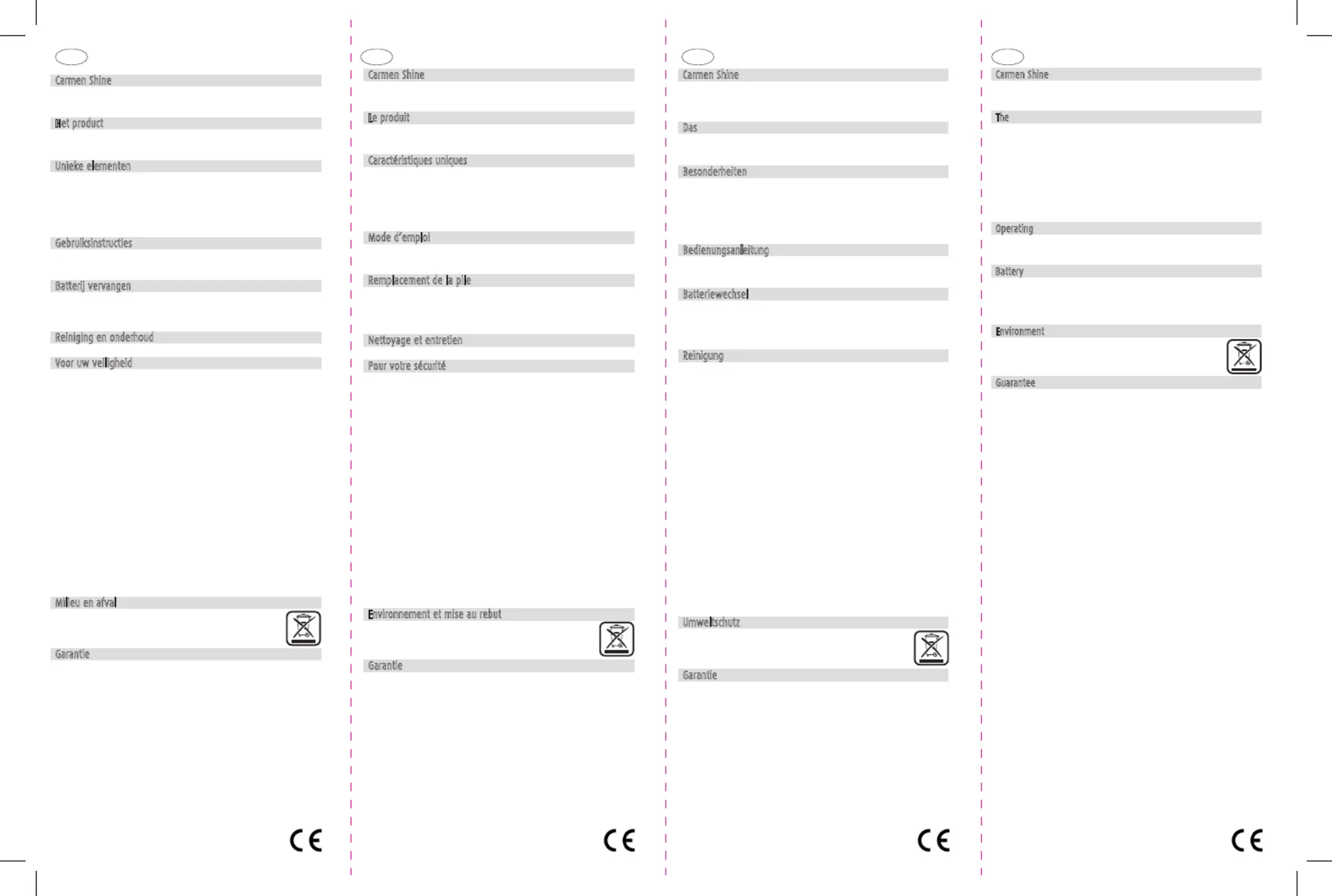 Gefeliciteerd met uw aankoop van de Carmen Shine. Lees de instructies zorgvuldig door, voor u