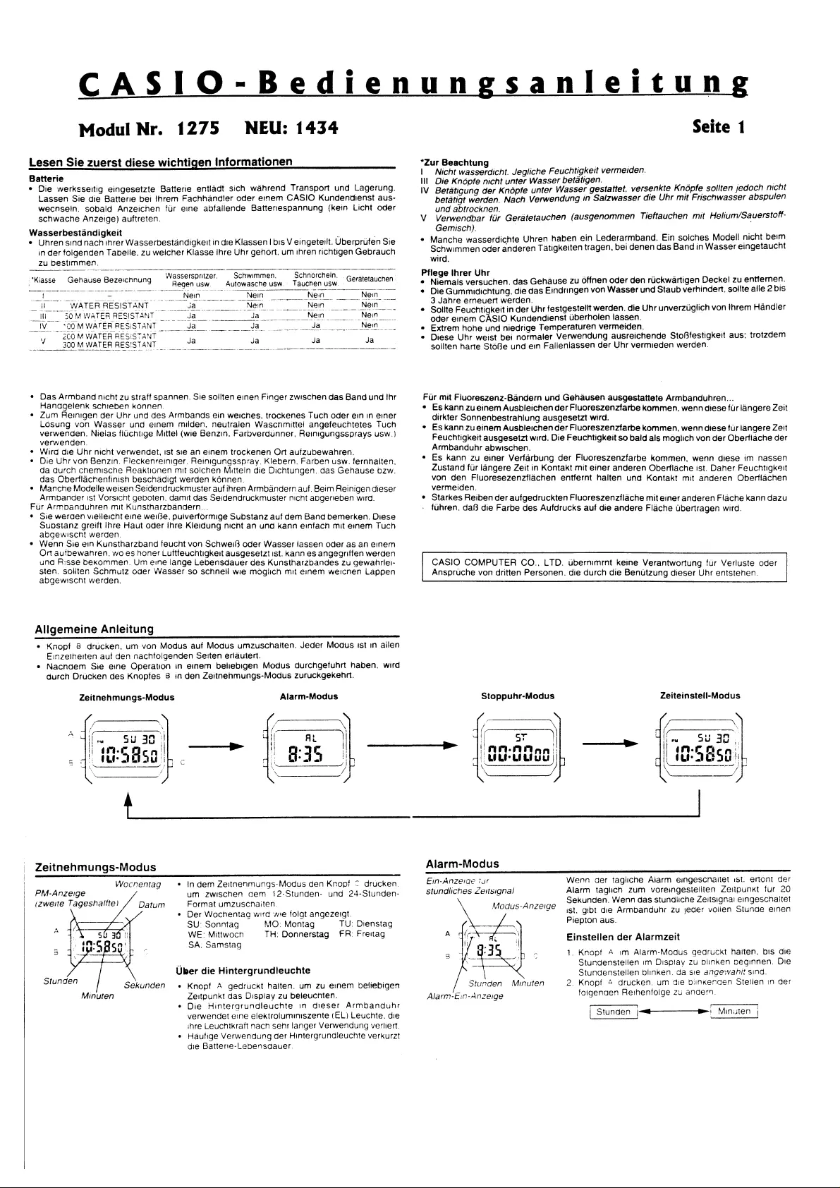 Bedienungsanleitung Armbanduhr Casio