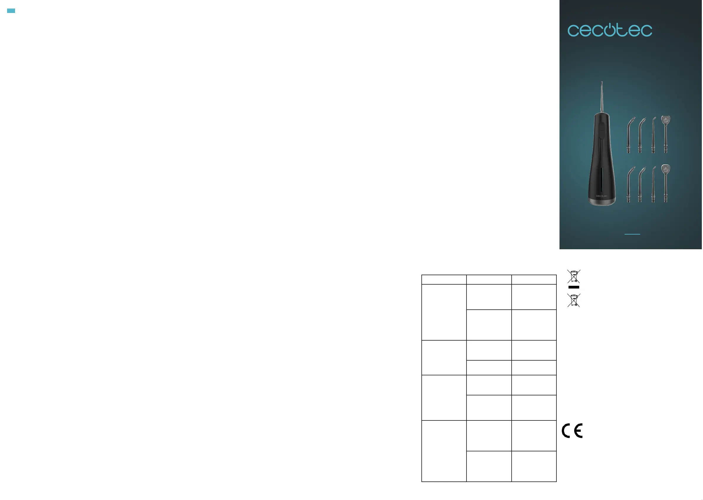 Lies die bedienungsanleitung für Cecotec Bamba ToothCare Jet Liberty (2 Seiten) kostenlos online; sie gehört zur Kategorie Fließgerät. Dieses Handbuch wurde von 2 Personen als hilfreich bewertet und erhielt im Schnitt 4.3 Sterne aus 7 Bewertungen. Hast du eine Frage zu Cecotec Bamba ToothCare Jet Liberty oder möchtest du andere Nutzer dieses Produkts befragen? Stelle eine Frage