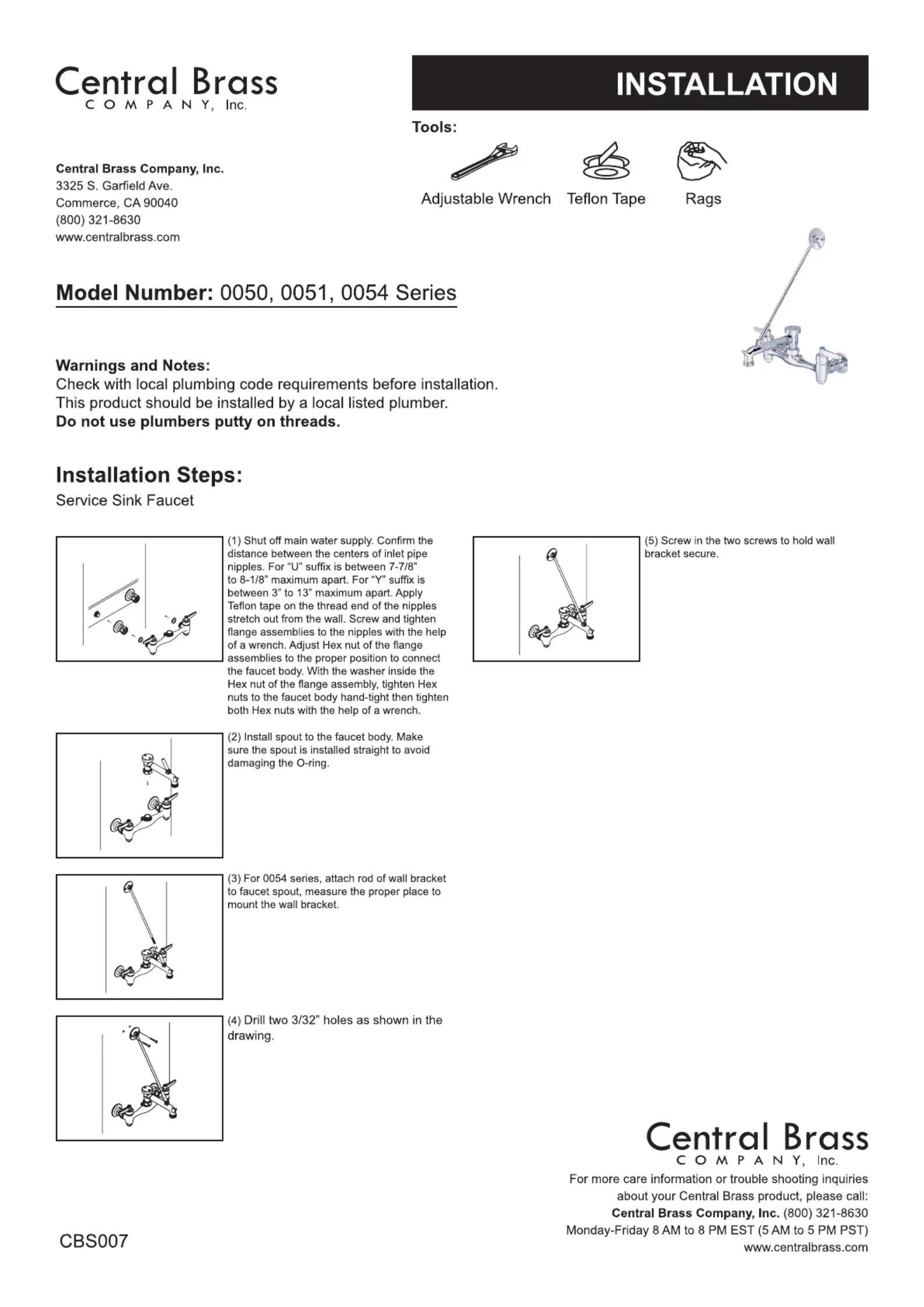 Lies die bedienungsanleitung für Central Brass 0054 (1 Seiten) kostenlos online; sie gehört zur Kategorie Wasserhahn. Dieses Handbuch wurde von 2 Personen als hilfreich bewertet und erhielt im Schnitt 4.6 Sterne aus 1.5 Bewertungen. Hast du eine Frage zu Central Brass 0054 oder möchtest du andere Nutzer dieses Produkts befragen? Stelle eine Frage