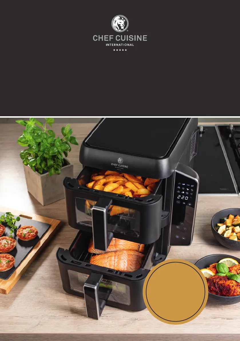 Lies die bedienungsanleitung für Chef Cuisine Airy Fryer Dual Zone (27 Seiten) kostenlos online; sie gehört zur Kategorie Fritteuse. Dieses Handbuch wurde von 29 Personen als hilfreich bewertet und erhielt im Schnitt 4.9 Sterne aus 15 Bewertungen. Hast du eine Frage zu Chef Cuisine Airy Fryer Dual Zone oder möchtest du andere Nutzer dieses Produkts befragen? Stelle eine Frage