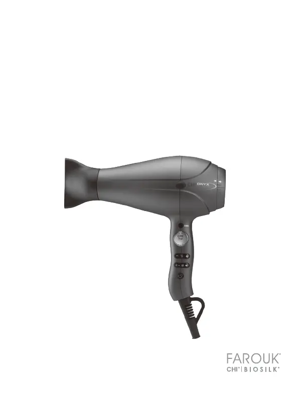 Lies die bedienungsanleitung für CHI Onyx Euroshine GF8539EU (28 Seiten) kostenlos online; sie gehört zur Kategorie Fön. Dieses Handbuch wurde von 29 Personen als hilfreich bewertet und erhielt im Schnitt 4.2 Sterne aus 2 Bewertungen. Hast du eine Frage zu CHI Onyx Euroshine GF8539EU oder möchtest du andere Nutzer dieses Produkts befragen? Stelle eine Frage