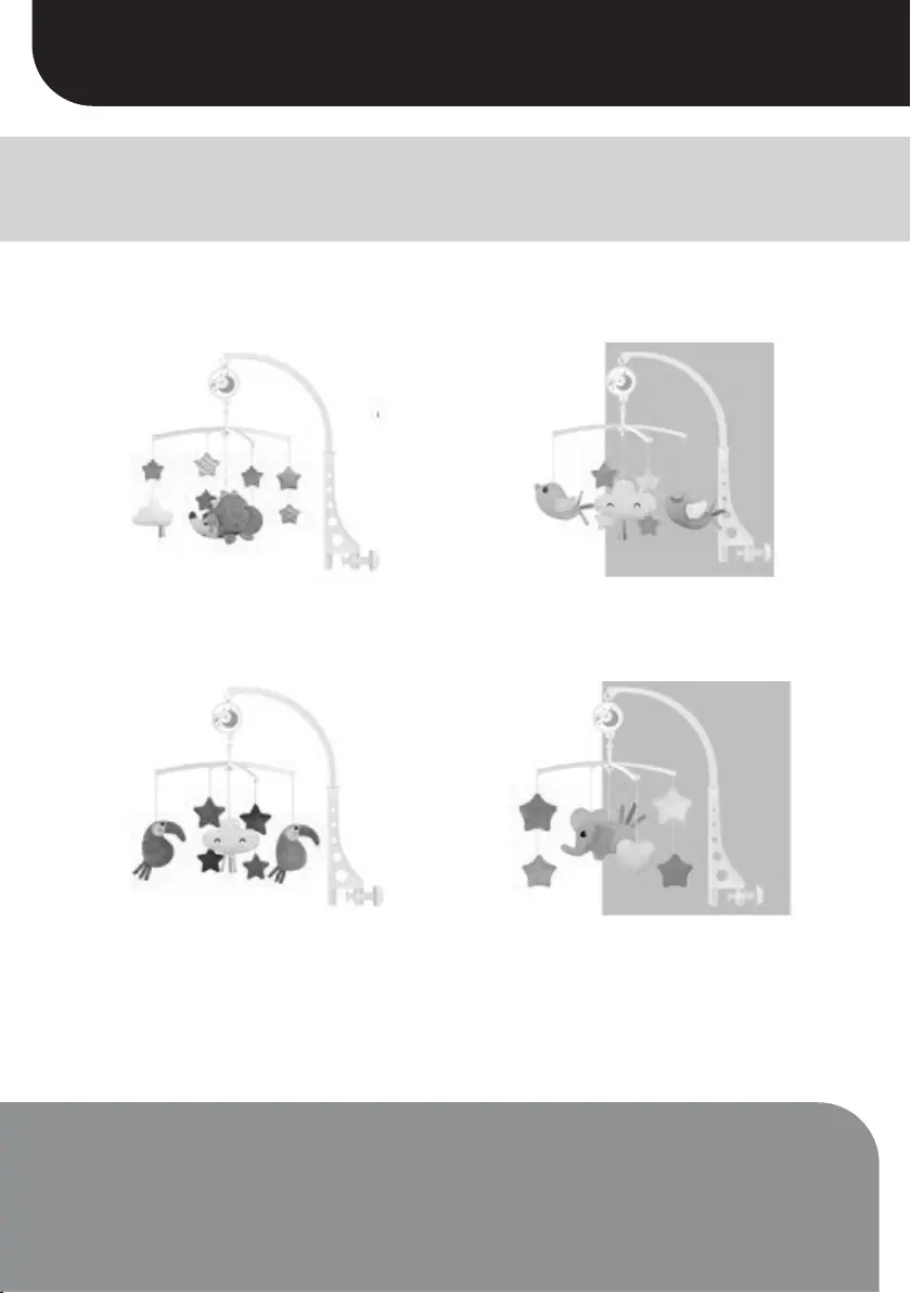 baby’s bed. The toy’s fun features are manually activated.