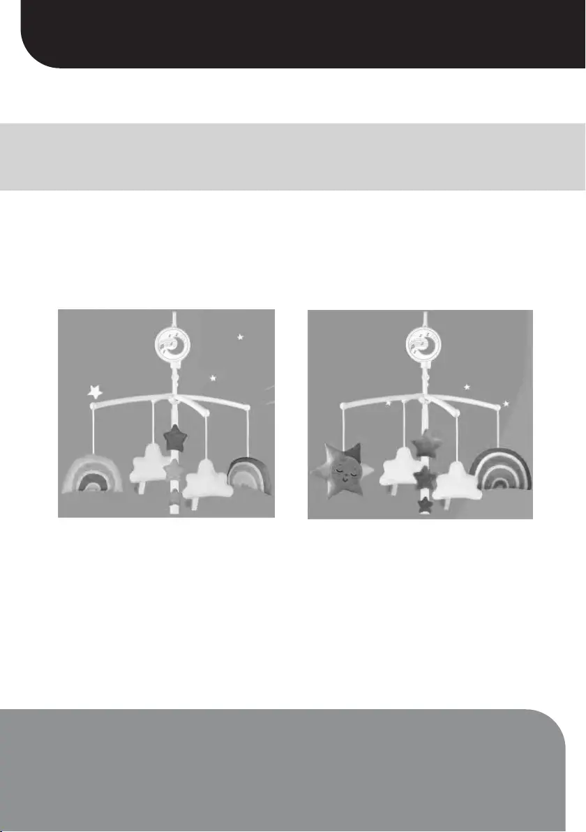 baby’s bed. The toy’s fun features are manually activated.