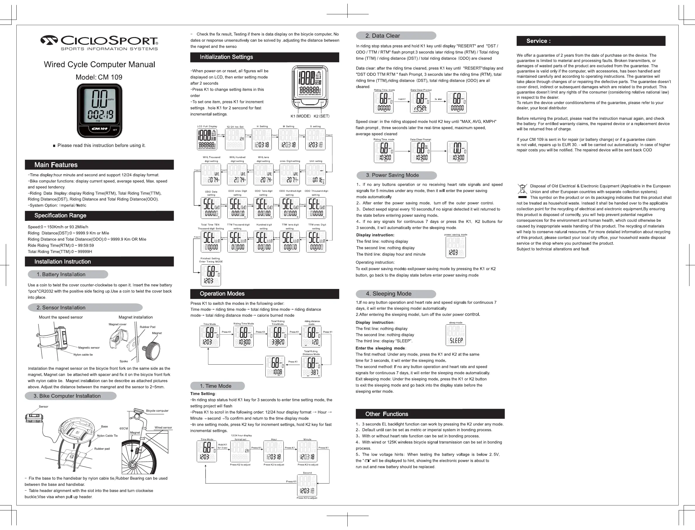 Lies die bedienungsanleitung für Ciclo Master CM 109 (2 Seiten) kostenlos online; sie gehört zur Kategorie Fahrradcomputer. Dieses Handbuch wurde von 35 Personen als hilfreich bewertet und erhielt im Schnitt 5.0 Sterne aus 18 Bewertungen. Hast du eine Frage zu Ciclo Master CM 109 oder möchtest du andere Nutzer dieses Produkts befragen? Stelle eine Frage