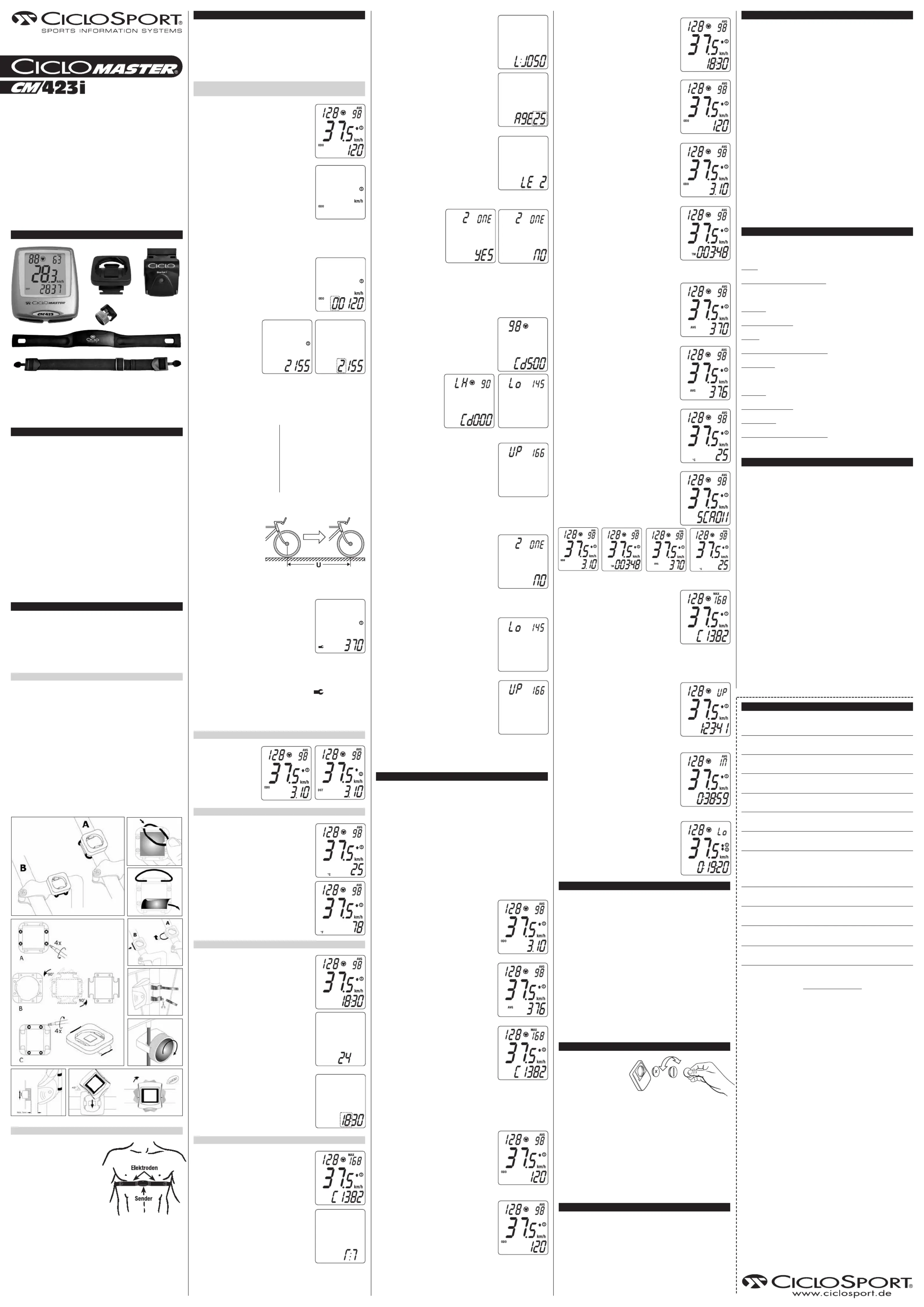 Lies die bedienungsanleitung für Ciclo Master CM 423i (1 Seiten) kostenlos online; sie gehört zur Kategorie Fahrradcomputer. Dieses Handbuch wurde von 39 Personen als hilfreich bewertet und erhielt im Schnitt 4.3 Sterne aus 20 Bewertungen. Hast du eine Frage zu Ciclo Master CM 423i oder möchtest du andere Nutzer dieses Produkts befragen? Stelle eine Frage