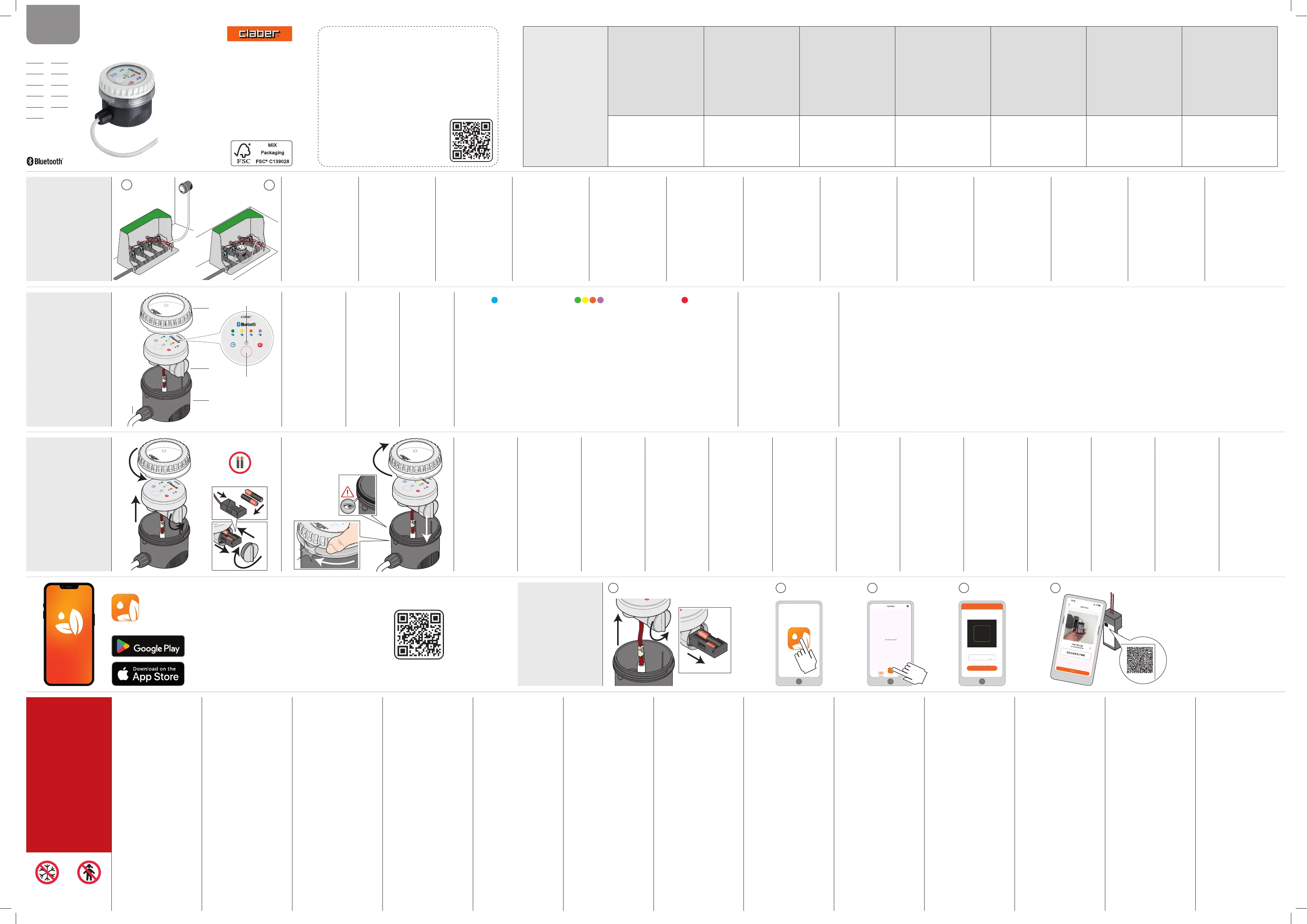 Lies die bedienungsanleitung für Claber CONTROLLER-4 BT 90843 (40 Seiten) kostenlos online; sie gehört zur Kategorie Bewässerungssteuerung. Dieses Handbuch wurde von 2 Personen als hilfreich bewertet und erhielt im Schnitt 4.1 Sterne aus 4 Bewertungen. Hast du eine Frage zu Claber CONTROLLER-4 BT 90843 oder möchtest du andere Nutzer dieses Produkts befragen? Stelle eine Frage