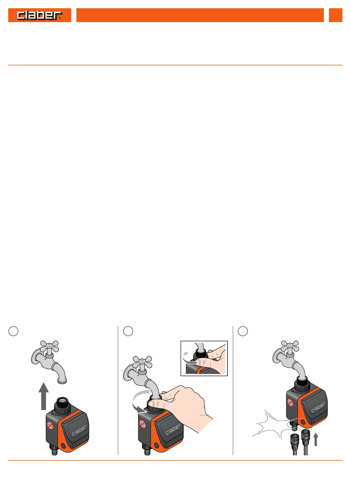 INSTALLATION. Connect the timer to a tap and connect it to the system. Do not install the water timer inside valve boxes, below ground level or indoors.