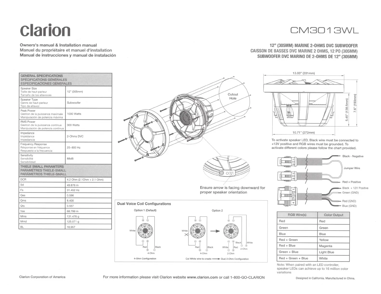 Lies die bedienungsanleitung für Clarion CM3013WL (3 Seiten) kostenlos online; sie gehört zur Kategorie Subwoofer. Dieses Handbuch wurde von 19 Personen als hilfreich bewertet und erhielt im Schnitt 4.8 Sterne aus 10 Bewertungen. Hast du eine Frage zu Clarion CM3013WL oder möchtest du andere Nutzer dieses Produkts befragen? Stelle eine Frage
