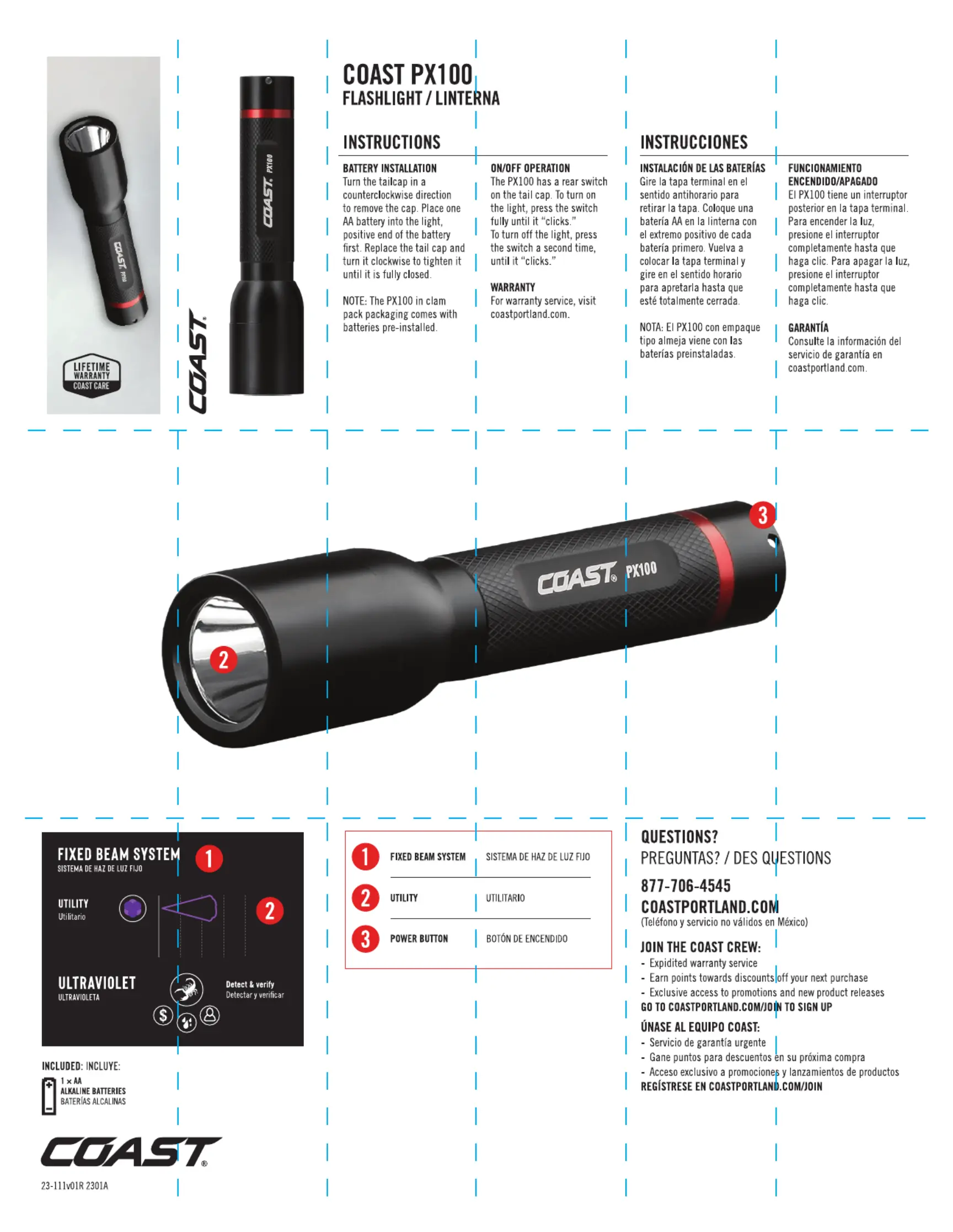 Lies die bedienungsanleitung für Coast PX100 (1 Seiten) kostenlos online; sie gehört zur Kategorie Taschenlampe. Dieses Handbuch wurde von 17 Personen als hilfreich bewertet und erhielt im Schnitt 4.1 Sterne aus 3 Bewertungen. Hast du eine Frage zu Coast PX100 oder möchtest du andere Nutzer dieses Produkts befragen? Stelle eine Frage