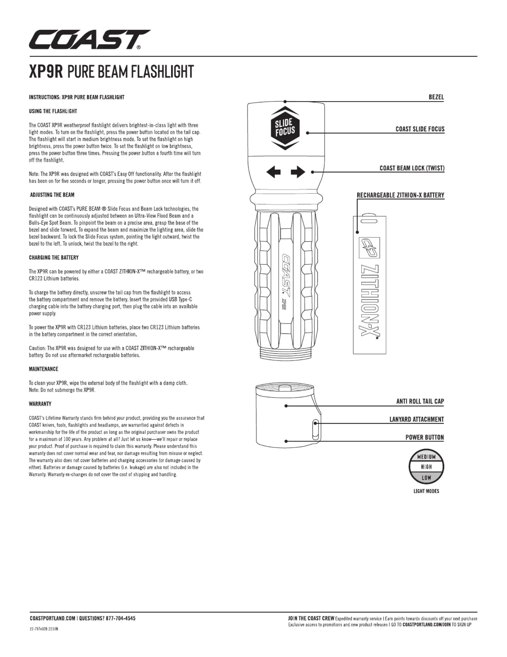 Lies die bedienungsanleitung für Coast XP9R (1 Seiten) kostenlos online; sie gehört zur Kategorie Taschenlampe. Dieses Handbuch wurde von 19 Personen als hilfreich bewertet und erhielt im Schnitt 4.2 Sterne aus 7 Bewertungen. Hast du eine Frage zu Coast XP9R oder möchtest du andere Nutzer dieses Produkts befragen? Stelle eine Frage