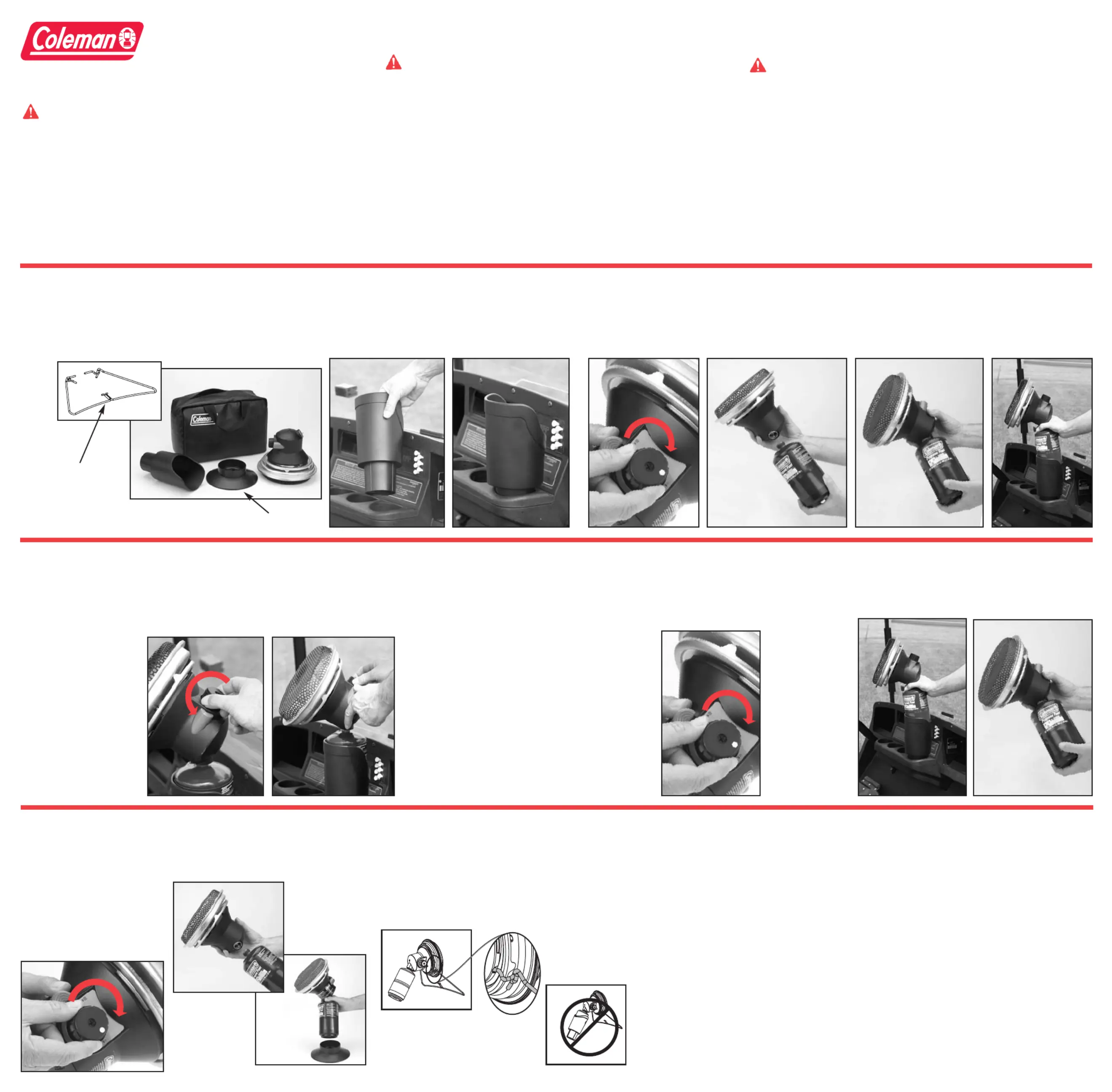 8. Use for heating only. Never modify or alter or use with any part or device not approved by Coleman.