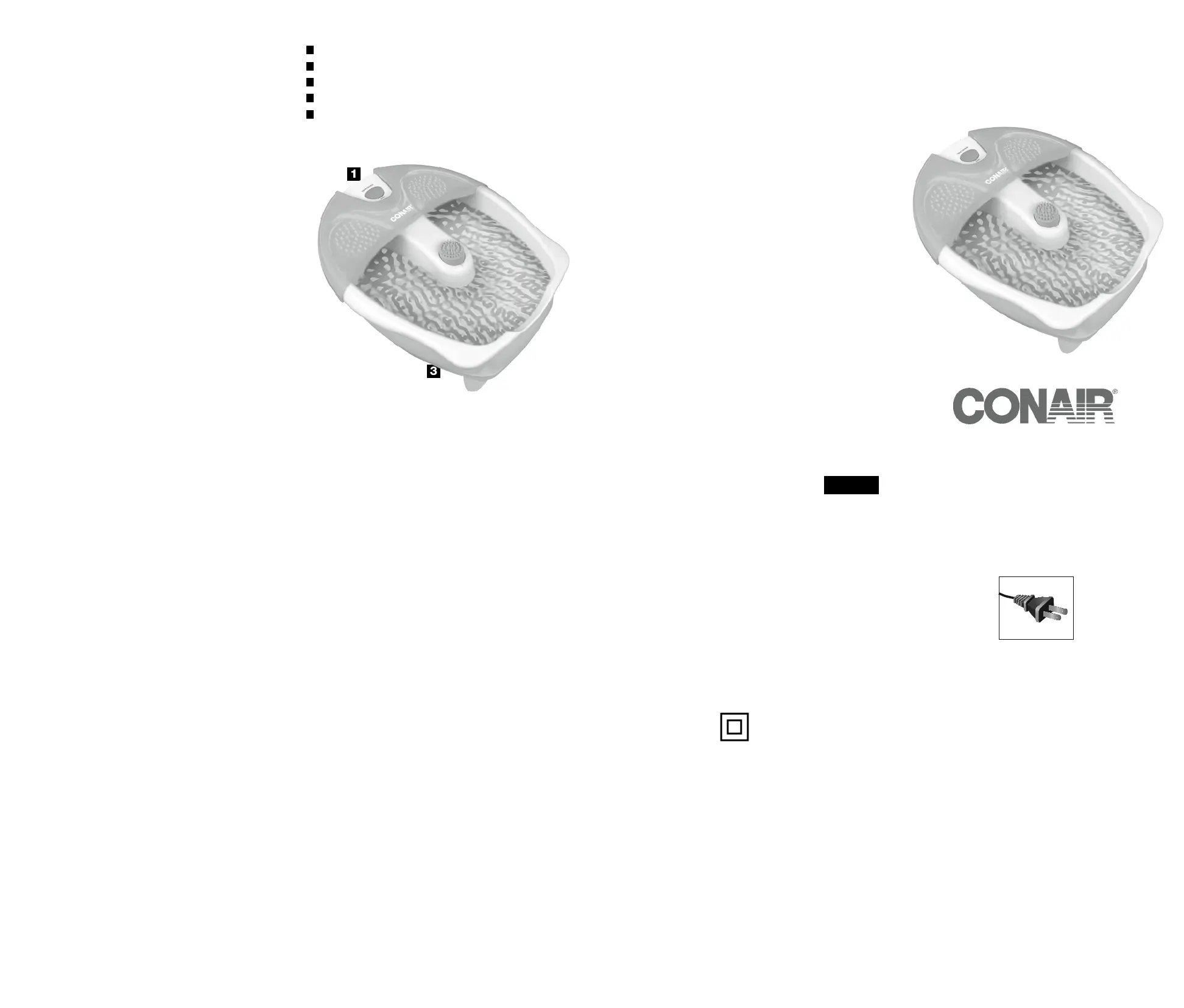 14. Do not stand on or in the foot bath. Use only while seated. Place feet