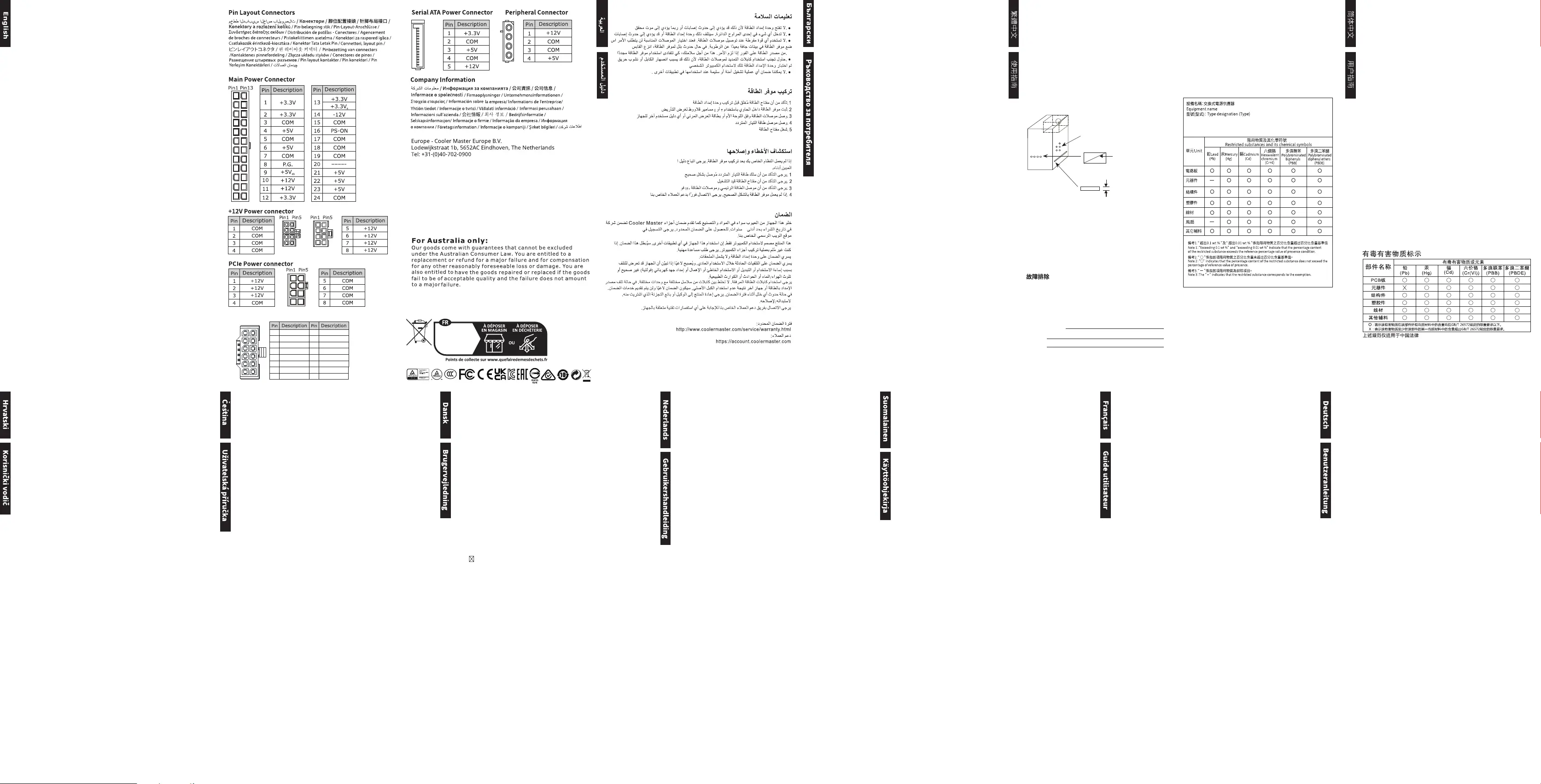 Cooler Master 保证自购买之日起为此电源设备提供最少 10 年的硬件有限保修,