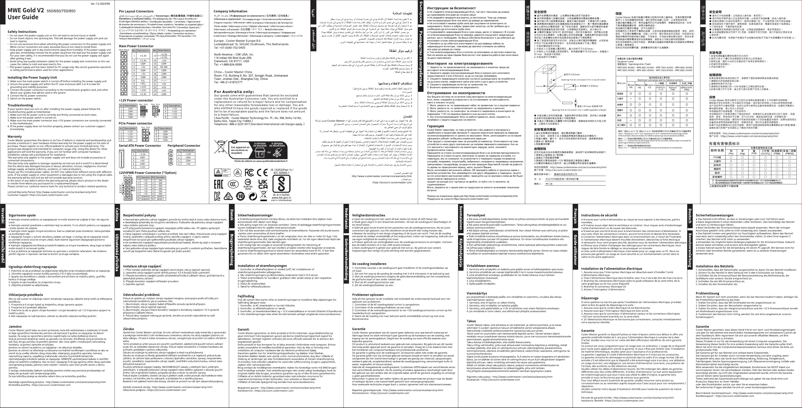 Lies die bedienungsanleitung für Cooler Master MWE Gold 850 V2 (57 Seiten) kostenlos online; sie gehört zur Kategorie Nicht kategorisiert. Dieses Handbuch wurde von 26 Personen als hilfreich bewertet und erhielt im Schnitt 4.8 Sterne aus 3 Bewertungen. Hast du eine Frage zu Cooler Master MWE Gold 850 V2 oder möchtest du andere Nutzer dieses Produkts befragen? Stelle eine Frage