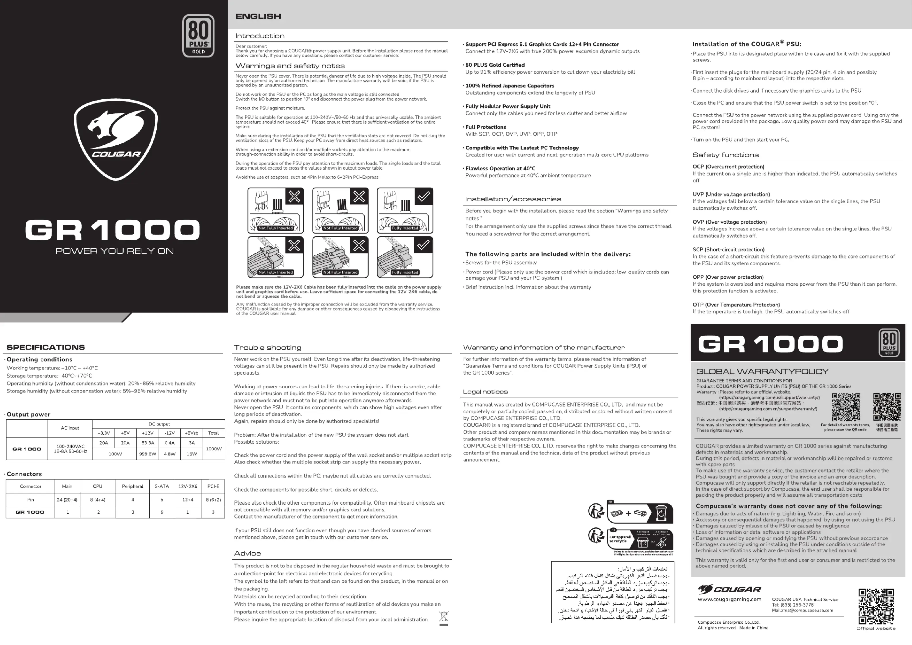 Cougar GR 1000 Bedienungsanleitung