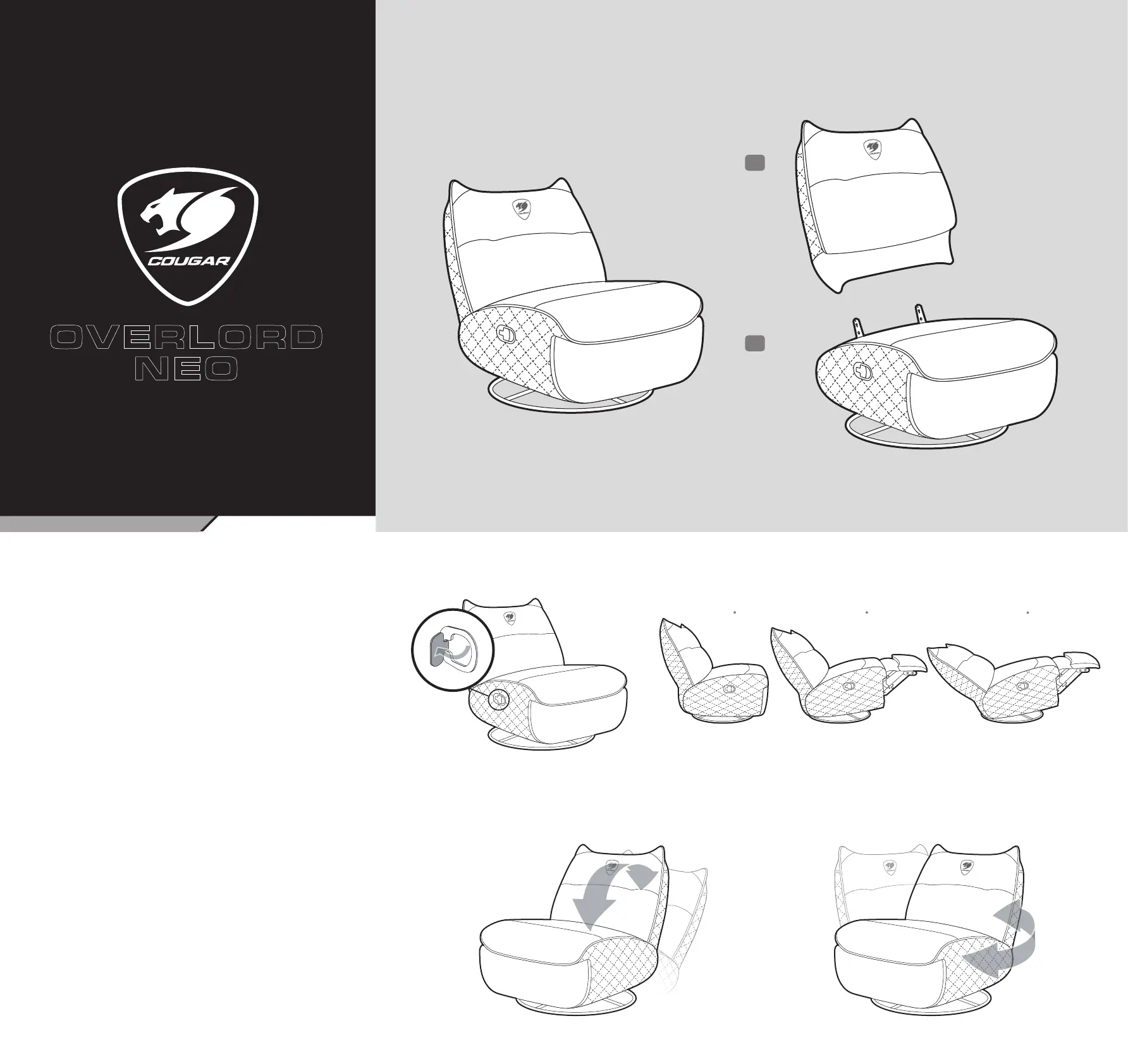 Lies die bedienungsanleitung für Cougar Overlord Neo (2 Seiten) kostenlos online; sie gehört zur Kategorie Gaming-Stuhl. Dieses Handbuch wurde von 2 Personen als hilfreich bewertet und erhielt im Schnitt 4.4 Sterne aus 6 Bewertungen. Hast du eine Frage zu Cougar Overlord Neo oder möchtest du andere Nutzer dieses Produkts befragen? Stelle eine Frage