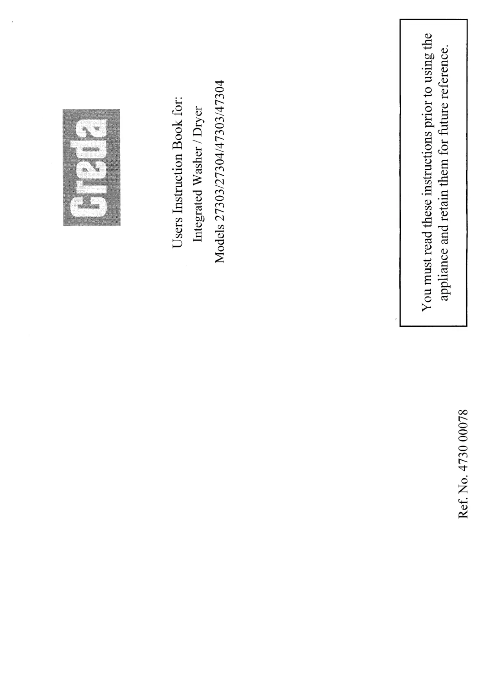 Lies die bedienungsanleitung für Creda 47304 (16 Seiten) kostenlos online; sie gehört zur Kategorie Waschmaschine. Dieses Handbuch wurde von 29 Personen als hilfreich bewertet und erhielt im Schnitt 4.2 Sterne aus 6 Bewertungen. Hast du eine Frage zu Creda 47304 oder möchtest du andere Nutzer dieses Produkts befragen? Stelle eine Frage