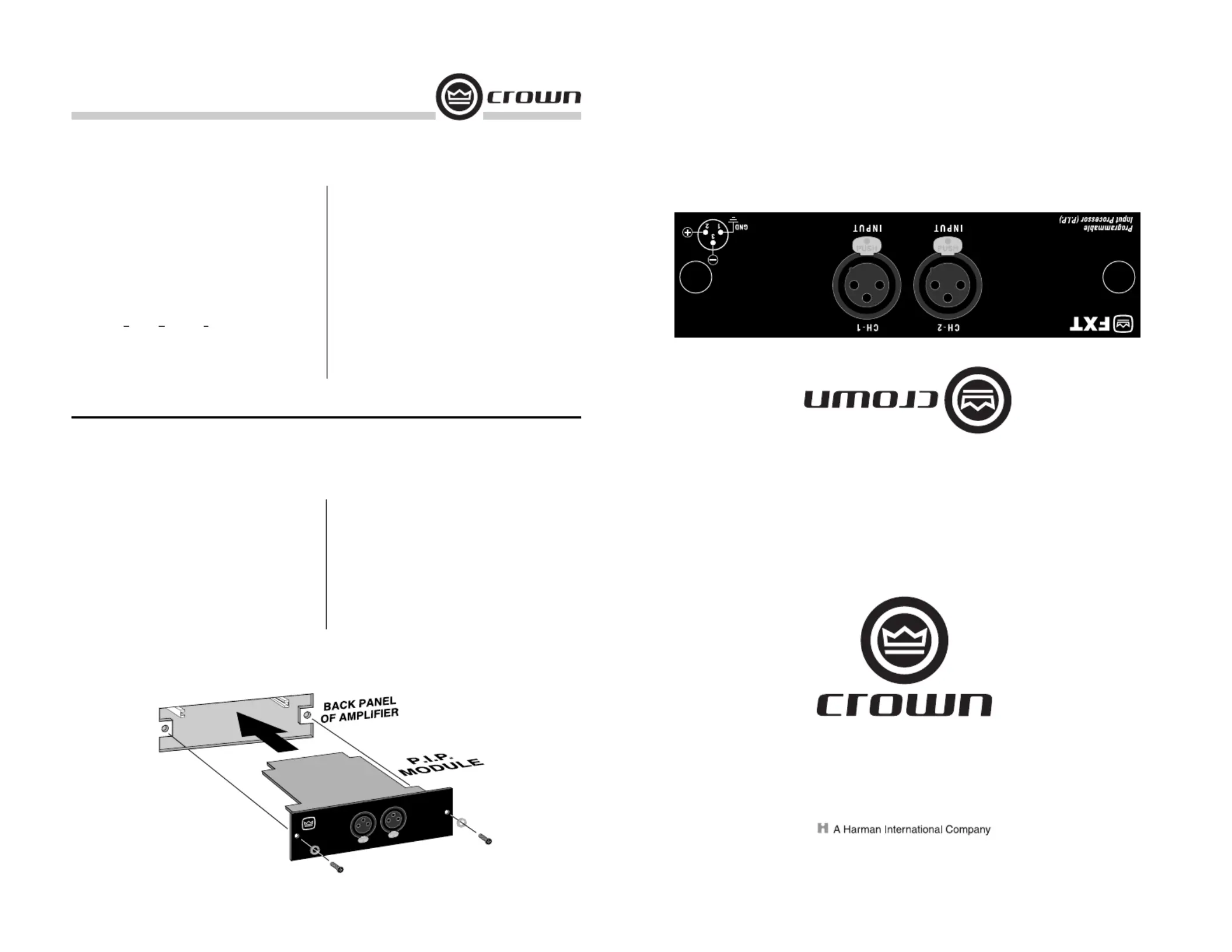 Thank you for purchasing the Crown P.I.P.-FXT