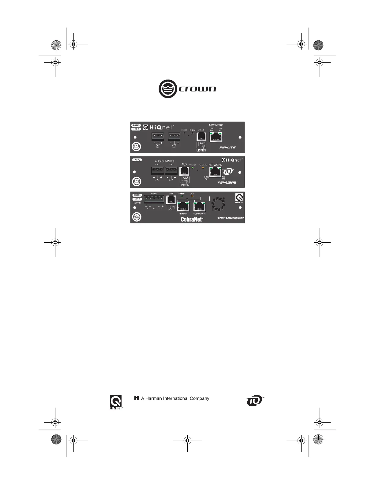 PIP2 are trademarks of Crown International. HiQnet is a trademark of Harman International