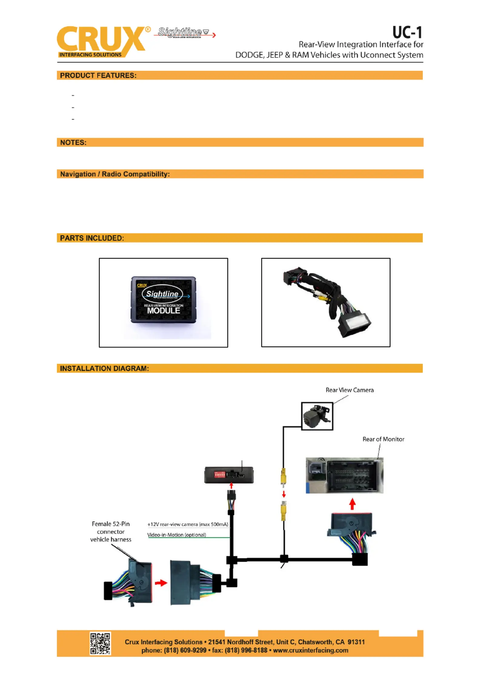 Adds reverse camera input in Uconnect systems.