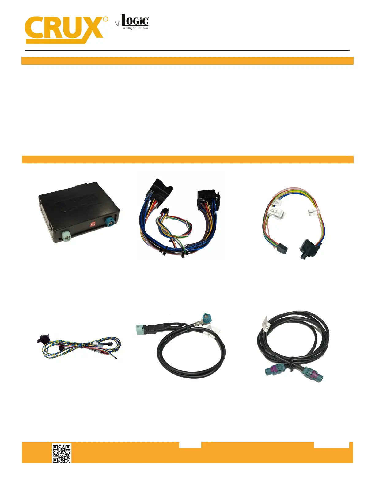 • Front camera input can also be used as an Auxiliary Video Input (Crux part# AUX-ABMP1, Fiber Opc Auxiliary Audio Input