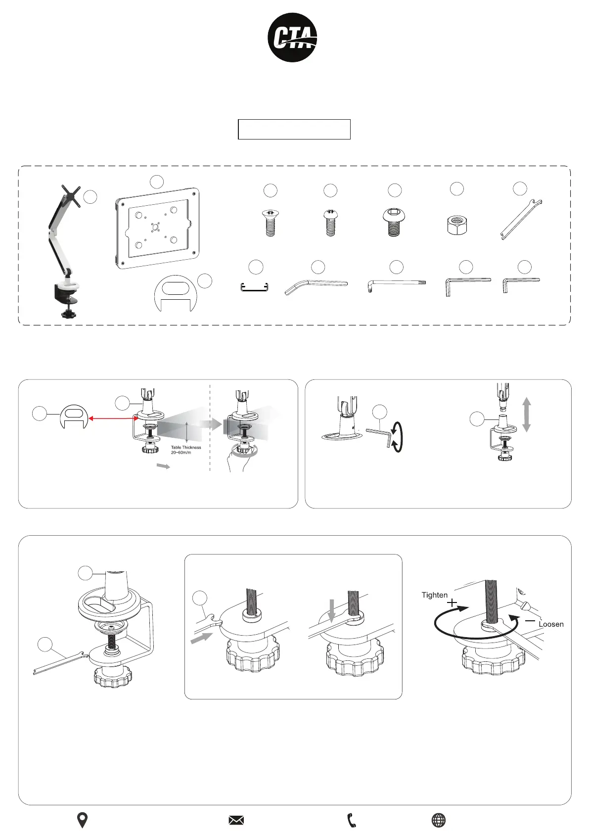 1. Base mount installation :2. Arms & base clamp adjustments :